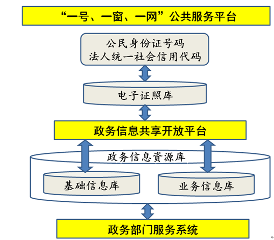 “一號(hào)、一窗、一網(wǎng)”的信息共享開放業(yè)務(wù)架構(gòu)為:通過(guò)統(tǒng)一的公民身份證號(hào)、法人統(tǒng)一社會(huì)信用代碼和綁定身份證號(hào)及法人代碼的實(shí)名電子證照,對(duì)接教育服務(wù)、醫(yī)療衛(wèi)生、社會(huì)保險(xiǎn)、社會(huì)福利、社會(huì)救助、住房公積金、勞動(dòng)就業(yè)、婚姻登記、殯葬服務(wù)、住房保障、公共安全等民生服務(wù)領(lǐng)域的政務(wù)信息共享和開放,實(shí)現(xiàn)“一號(hào)申請(qǐng)、一窗受理、一網(wǎng)通辦”的政務(wù)服務(wù)。