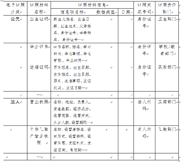 電子證照是指政府部門和取得法定資質(zhì)的第三方服務(wù)機(jī)構(gòu)依法形成出具的具有法律效力的各類批文、證件、執(zhí)(牌)照、鑒定報(bào)告、證明材料,以及社會(huì)公眾向證照形成單位提交的各種申請(qǐng)文件及相關(guān)證明材料等的電子文件。電子證照主要包括工商營(yíng)業(yè)執(zhí)照、稅務(wù)登記證等法人使用的證照,出生證、結(jié)婚證、房產(chǎn)證、駕駛證等自然人使用的證照。例如,電子營(yíng)業(yè)執(zhí)照是根據(jù)國(guó)家有關(guān)企業(yè)登記注冊(cè)的法律法規(guī),由依法成立的具有認(rèn)證資格的第三方機(jī)構(gòu),以數(shù)字證書為基礎(chǔ),制作載有企業(yè)注冊(cè)登記信息的數(shù)字證書,由工商行政管理部門監(jiān)制、核發(fā),是企業(yè)和個(gè)體工商戶唯一合法的電子營(yíng)業(yè)執(zhí)照。