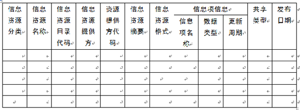 表2 政務(wù)信息資源目錄模版