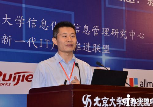 北京大學軟件所副所長、中國新一代IT產(chǎn)業(yè)推進聯(lián)盟技術分委會主任黃罡先生發(fā)表了題為《軟件定義的新型智慧城市》的精彩演講。他從如何解除智慧城市的孤島危機、打破孤島的軟件定義之道以及軟件定義的產(chǎn)學研用實踐三個方面展開論述:在大數(shù)據(jù)時代,新型智慧城市面臨著基本資源和應用資源的孤島危機,在網(wǎng)構軟件的信息孤島開放整體解決方案中,要遵循顛覆傳統(tǒng)資源開放、政企應用集成、數(shù)據(jù)質(zhì)量保障等思路,來保證信息孤島的有序開放。要從軟件定義的思想去通過技術的手段重新構建一種結構,自動生成API供業(yè)務使用。他最后表示,目前著手的軟件有接口自動生成技術,還有基礎混合云的IaaS管理系統(tǒng)以及相應的在PaaS上面的系統(tǒng),他相信中國至少在軟件定義、智慧城市上會走出屬于自己的一條路。