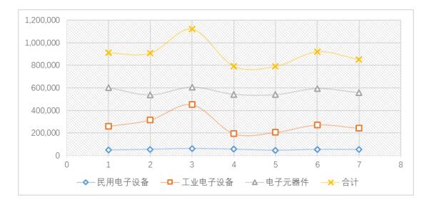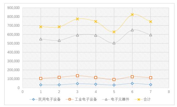 圖1 2016年1-7月電子信息產(chǎn)業(yè)產(chǎn)值(單位:百萬日元)
