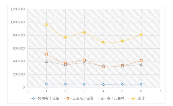圖2 2016年1-6月日本電子信息產(chǎn)品進(jìn)口額(單位:百萬日元)