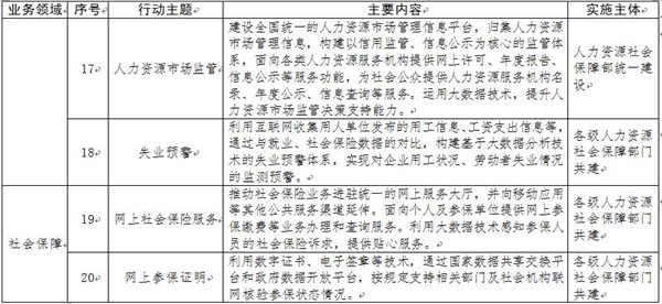 “互聯(lián)網(wǎng)+人社”2020行動計(jì)劃由基礎(chǔ)能力提升、管理服務(wù)創(chuàng)新和社會協(xié)作發(fā)展三項(xiàng)行動計(jì)劃組成,共包括48個行動主題(見附件)。