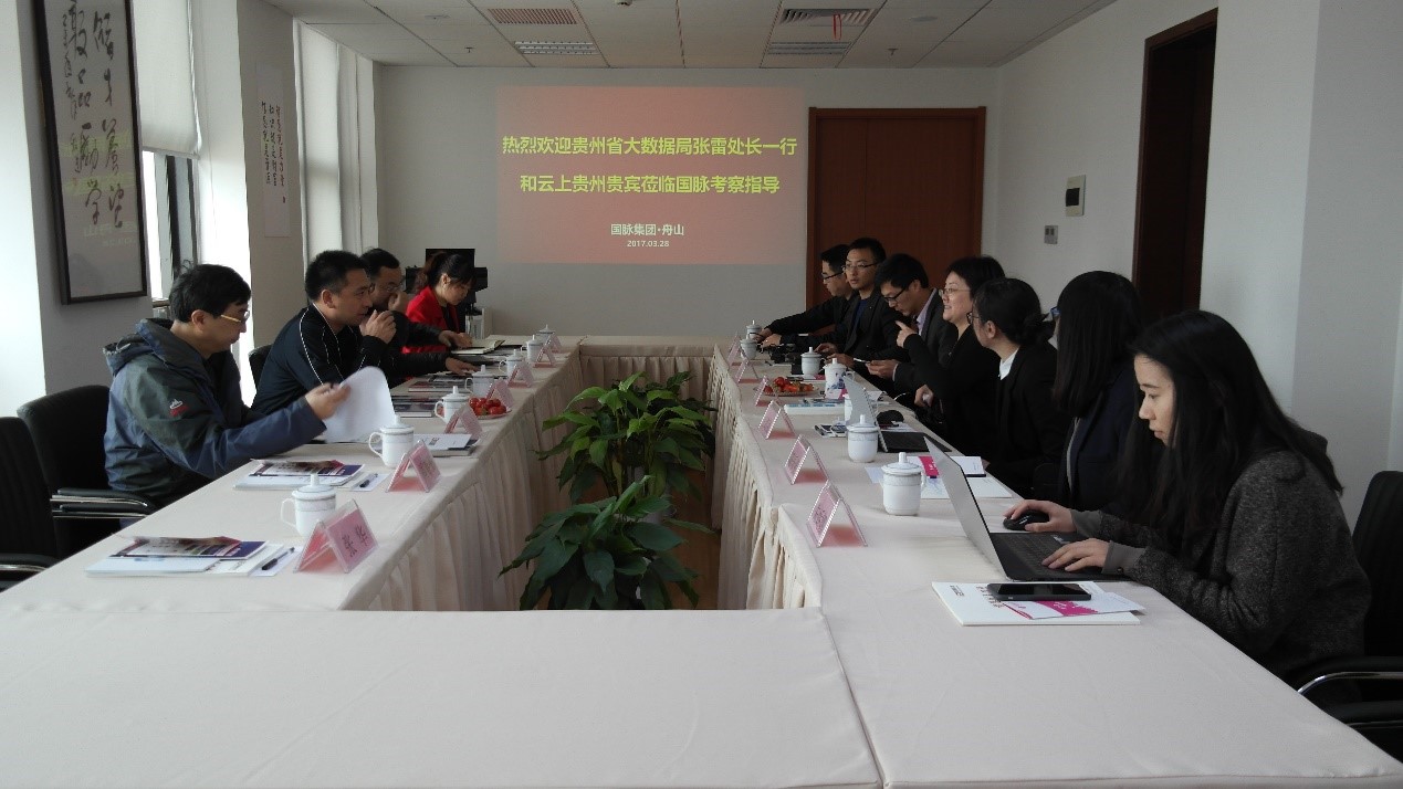 2017年3月28日,貴州省政府大數(shù)據(jù)局?jǐn)?shù)據(jù)資源管理與安全處處長張雷一行蒞臨國脈集團(tuán)(舟山)考察指導(dǎo),并與國脈集團(tuán)洽談戰(zhàn)略合作意向。
