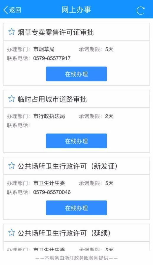 目前,浙江政務(wù)服務(wù)網(wǎng)APP義烏站“網(wǎng)上辦事”服務(wù)可提供煙草專賣零售許可證審批、臨時(shí)占用城市道路審批、公共場(chǎng)所衛(wèi)生行政許可、汽車租賃經(jīng)營(yíng)備案等14項(xiàng)網(wǎng)上直辦事項(xiàng),更多其他事項(xiàng)正在加緊梳理中。