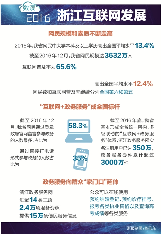 截至2016年底,浙江政務服務網(wǎng)實名注冊用戶已達350萬,日均瀏覽量達到400萬,政務服務辦件累計超過3000萬件。