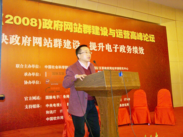 國脈電子政務(wù)網(wǎng)訊 11月27日上午,第三屆(2008)政府網(wǎng)站群建設(shè)與運營高峰論壇在北京梅地亞中心隆重舉行。本次會議由中國社會科學(xué)院信息化研究中心和國脈互聯(lián)政府網(wǎng)站評測研究中心聯(lián)合主辦,以“加快政府網(wǎng)站群建設(shè) 提升電子政務(wù)績效”為主題,旨在共同交流政府網(wǎng)站群的建設(shè)與運營經(jīng)驗,探索如何構(gòu)建以人為本的服務(wù)型政府網(wǎng)站“金名片”。國家信息中心信息化研究部主任助理于施洋主持了會議,中央各部委、各省市地區(qū)政府信息中心領(lǐng)導(dǎo)、管理者及網(wǎng)站運營負(fù)責(zé)人、電子政務(wù)服務(wù)供應(yīng)商、專業(yè)媒體人士等220余人參會。