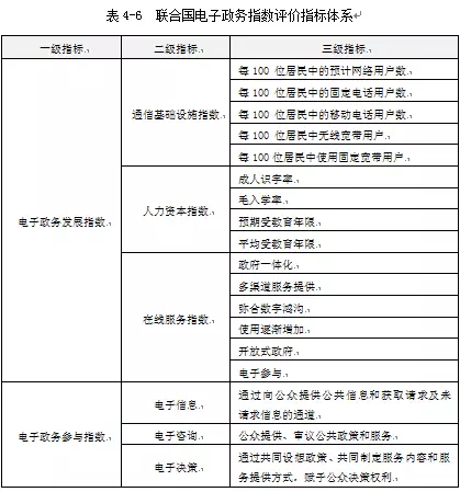 通過聯(lián)合國電子政務(wù)指數(shù)評價指標(biāo)體系可以看出,在通信基礎(chǔ)設(shè)施、人力資本、在線服務(wù)三個方面涉及的內(nèi)容已存在PC互聯(lián)網(wǎng)時代的路徑依賴,對于在“手機(jī)思維”籠罩的移動互聯(lián)網(wǎng)環(huán)境下,特別對于信息基礎(chǔ)設(shè)施發(fā)展不均衡的中國而言,這套評價指標(biāo)體系已存在某些無法覆蓋的“盲區(qū)”(見表4-6)。首先,“通信基礎(chǔ)設(shè)施”所測評的“每100位居民中無線寬帶用戶”,這里應(yīng)指的是無線寬帶的入戶率,而對于公共Wi-Fi迅速普及的中國而言,在辦公樓、商業(yè)區(qū)、機(jī)場等區(qū)域的移動上網(wǎng)已經(jīng)成為潮流,因此該項(xiàng)指標(biāo)不足以完整體現(xiàn)通信基礎(chǔ)設(shè)施的能力水平。