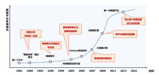大數(shù)據(jù)不是憑空而來,1981年第一個數(shù)據(jù)倉庫誕生,到現(xiàn)在已經(jīng)有了近40年的歷史,相對數(shù)據(jù)倉庫來說我還是個年輕人。而國內(nèi)企業(yè)數(shù)據(jù)平臺的建設(shè)大概從90年代末就開始了,從第一代架構(gòu)出現(xiàn)到現(xiàn)在已經(jīng)經(jīng)歷了近20年的時間。