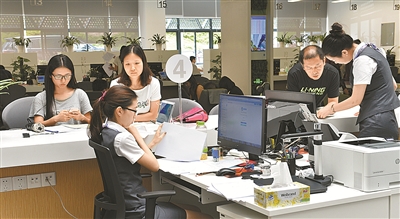 人才是南山發(fā)展的保障。服務(wù)大廳一樓中心位置設(shè)立了人才服務(wù)專區(qū),專門(mén)為轄區(qū)內(nèi)的“領(lǐng)航人才”、在職人才、大中專院校畢業(yè)生等,提供各類人才服務(wù)。7月5日,申請(qǐng)人胡梅攜帶22名深大教師的材料來(lái)辦理“領(lǐng)航人才”認(rèn)定業(yè)務(wù)。由于申請(qǐng)數(shù)量較大,大廳立即增派人手,由3名辦事專員共同受理該項(xiàng)業(yè)務(wù),用近2小時(shí)完成原要一天才能辦理完的業(yè)務(wù)。
