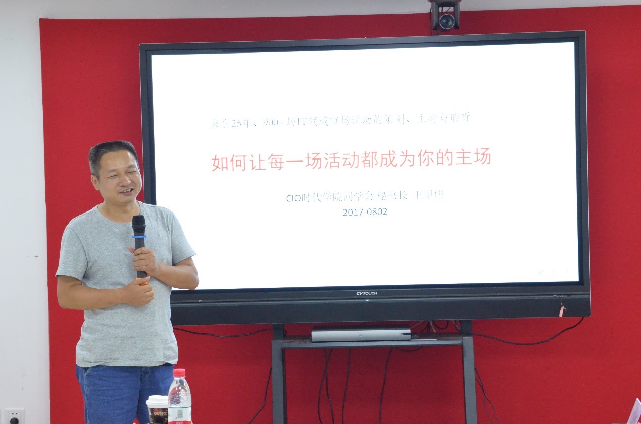 本次會議由CIO時代市場部客戶經(jīng)理閆海麗主持,CIO時代首席運營官劉晶做CIO時代政府資源介紹,CIO時代學(xué)院同學(xué)會秘書長王甲佳發(fā)表主題演講:《讓每一場活動都成為你的主場》。