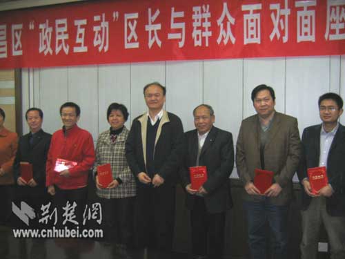 3月31日上午,記者從武昌區(qū)政府獲悉,一位網(wǎng)民因向政府有關(guān)部門提多條建議被采納,被授予了支持政府工作優(yōu)秀提議人。武昌區(qū)召開“政民互動”區(qū)長與群眾面對面座談會,會議表彰了2008年度“關(guān)注武昌發(fā)展支持政府工作”貢獻(xiàn)突出的8位市民,并為他們頒發(fā)證書和獎金。