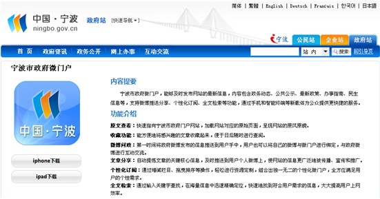 [2012特色評選]寧波政府...(1)觸摸屏系統(tǒng)。開發(fā)了適合在觸摸屏電腦用手指操作的政府信息查看、檢索...