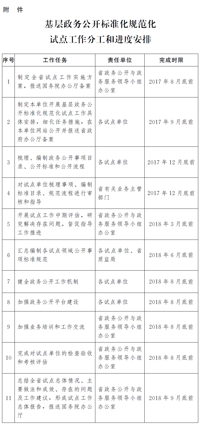 附件:基層政務(wù)公開標準化規(guī)范化試點工作分工和進度安排