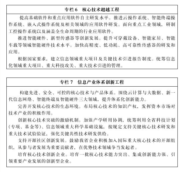 推動(dòng)技術(shù)創(chuàng)新和產(chǎn)業(yè)化。打造自主先進(jìn)的技術(shù)體系,以系統(tǒng)思維構(gòu)建新一代網(wǎng)絡(luò)技術(shù)體系、云計(jì)算體系、安全技術(shù)體系以及高端制造裝備技術(shù)體系。強(qiáng)化戰(zhàn)略性前沿技術(shù)超前布局。加強(qiáng)量子通信、人工智能、虛擬現(xiàn)實(shí)、大數(shù)據(jù)認(rèn)知分析、無(wú)人駕駛交通工具、區(qū)塊鏈等新技術(shù)基礎(chǔ)研發(fā)和前沿布局,加快構(gòu)建智能穿戴設(shè)備、高級(jí)機(jī)器人、智能汽車等新興智能終端產(chǎn)業(yè)體系和政策環(huán)境。鼓勵(lì)企業(yè)開(kāi)展基礎(chǔ)性前沿性創(chuàng)新研究。推動(dòng)新一代信息網(wǎng)絡(luò)技術(shù)超前部署,適時(shí)啟動(dòng)5G商用,支持企業(yè)發(fā)展面向移動(dòng)互聯(lián)網(wǎng)、物聯(lián)網(wǎng)的5G創(chuàng)新應(yīng)用,積極拓展5G業(yè)務(wù)應(yīng)用領(lǐng)域。加快推動(dòng)基于IPv6的移動(dòng)互聯(lián)網(wǎng)商用進(jìn)程,積極引導(dǎo)商業(yè)網(wǎng)站、政府及公共企事業(yè)單位網(wǎng)站向IPv6遷移。支持省內(nèi)企業(yè)、高校參與、承接國(guó)家信息化領(lǐng)域基礎(chǔ)技術(shù)、通用技術(shù)以及非對(duì)稱技術(shù)研發(fā)。統(tǒng)籌基礎(chǔ)研究、技術(shù)創(chuàng)新、產(chǎn)業(yè)發(fā)展與應(yīng)用部署,加強(qiáng)產(chǎn)業(yè)鏈各環(huán)節(jié)協(xié)調(diào)互動(dòng)。推動(dòng)強(qiáng)強(qiáng)聯(lián)合、協(xié)同攻關(guān),組建產(chǎn)業(yè)聯(lián)盟。在信息通信關(guān)鍵核心技術(shù)領(lǐng)域,建立項(xiàng)目揭榜掛帥機(jī)制。完善覆蓋知識(shí)產(chǎn)權(quán)、技術(shù)標(biāo)準(zhǔn)、成果轉(zhuǎn)化、技術(shù)交易、測(cè)試驗(yàn)證、企業(yè)孵化和產(chǎn)業(yè)化投資評(píng)估等環(huán)節(jié)的產(chǎn)業(yè)服務(wù)體系,著力推進(jìn)信息通信技術(shù)科研成果轉(zhuǎn)化和產(chǎn)業(yè)化。