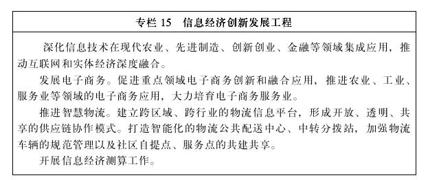 信息經(jīng)濟(jì)全面發(fā)展,互聯(lián)網(wǎng)和實(shí)體經(jīng)濟(jì)深度融合。重點(diǎn)行業(yè)數(shù)字化、網(wǎng)絡(luò)化、智能化取得明顯進(jìn)展,網(wǎng)絡(luò)化協(xié)同創(chuàng)新體系全面形成。互聯(lián)網(wǎng)與“三農(nóng)”的融合發(fā)展取得顯著成效,農(nóng)業(yè)生產(chǎn)智能化、經(jīng)營(yíng)網(wǎng)絡(luò)化水平明顯提高。
