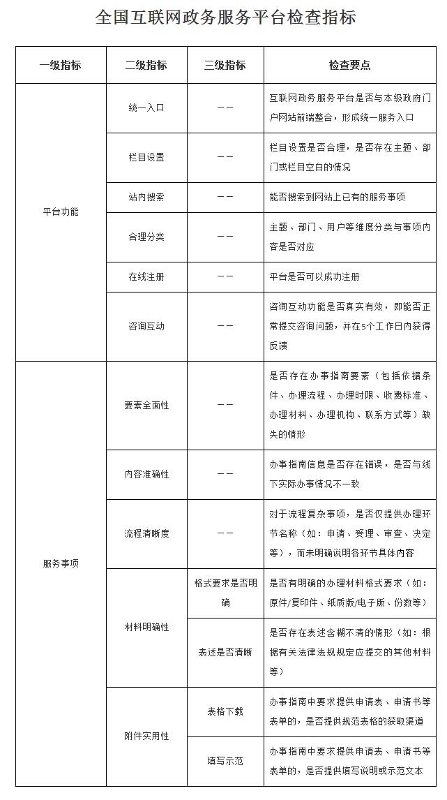 附件:全國互聯(lián)網(wǎng)政務服務平臺檢查指標