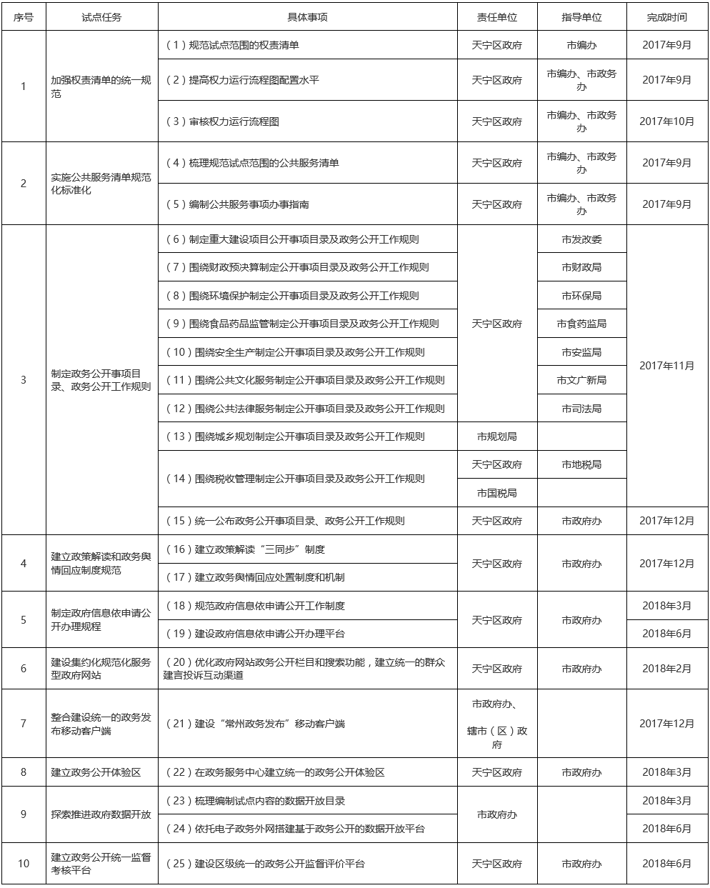 常州市基層政務公開標準化規(guī)范化試點任務分工及進度安排