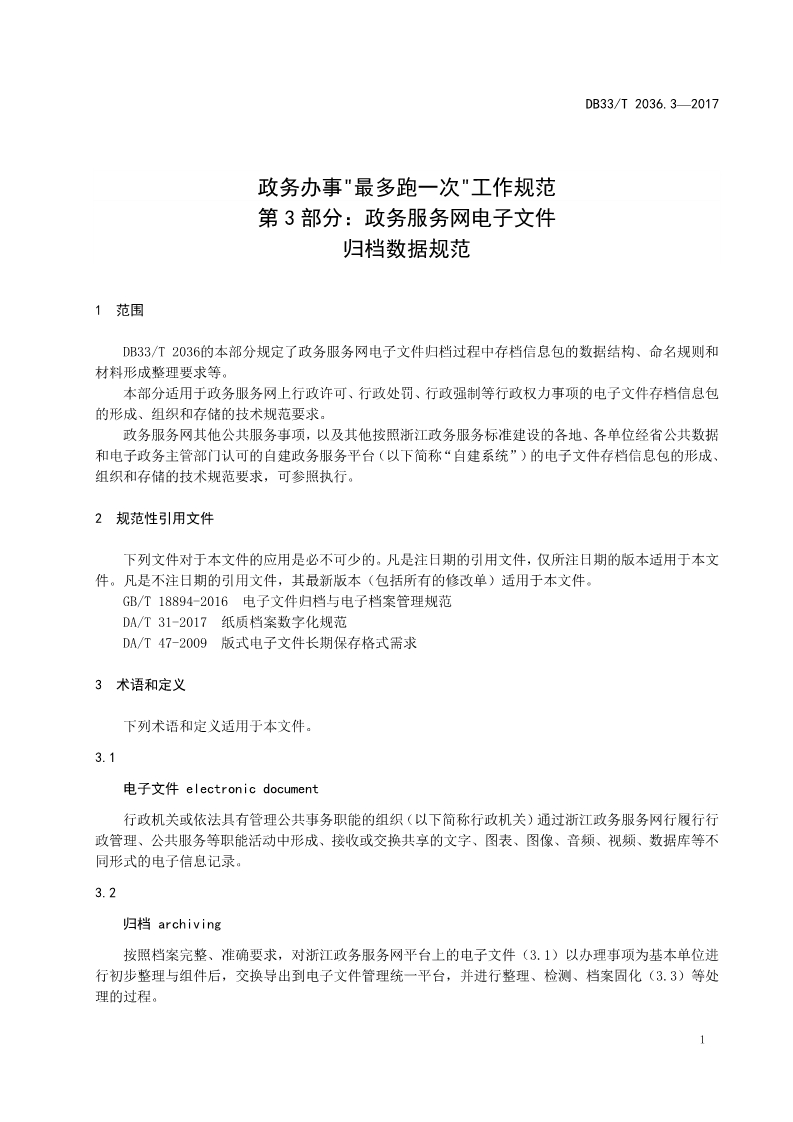 政務(wù)辦事“最多跑一次”工作規(guī)范第 3 部分:政務(wù)服務(wù)網(wǎng)電子文件歸檔數(shù)據(jù)規(guī)范.pdf