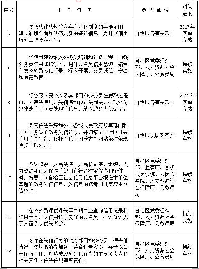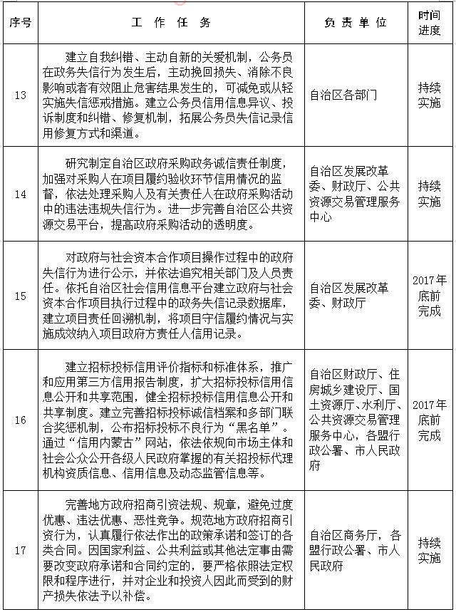 加強政務(wù)誠信建設(shè)實施方案重點任務(wù)分工及進(jìn)度安排表