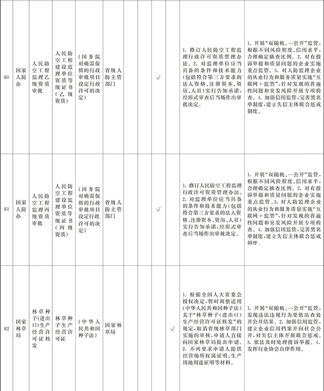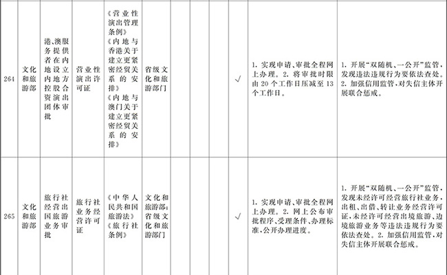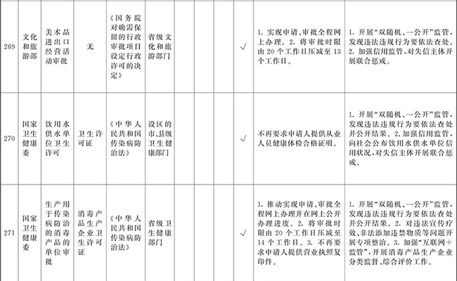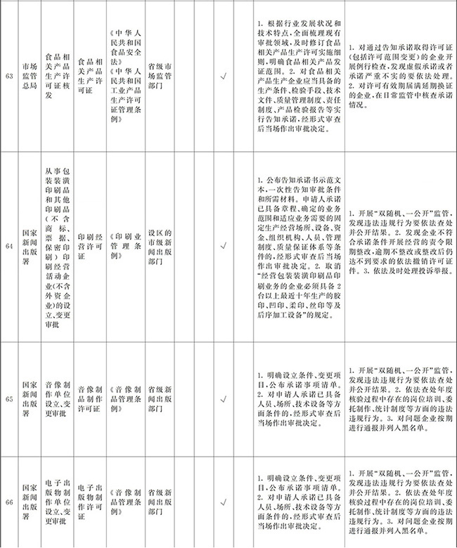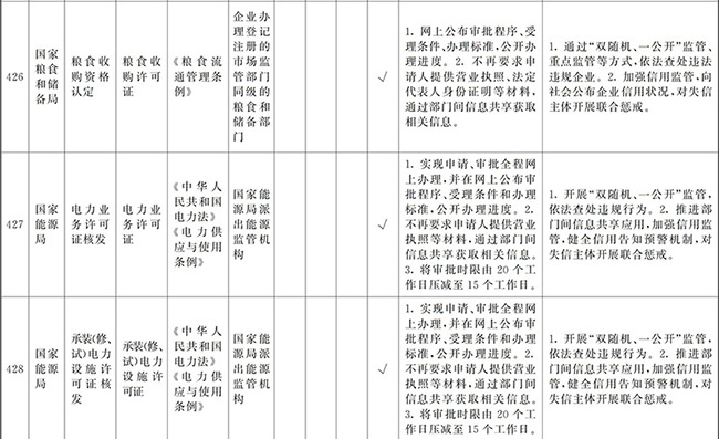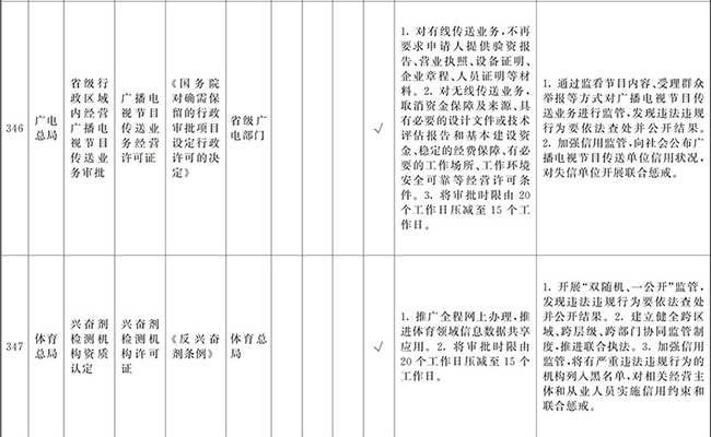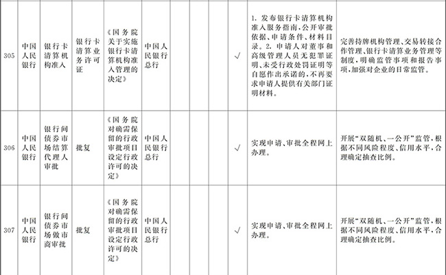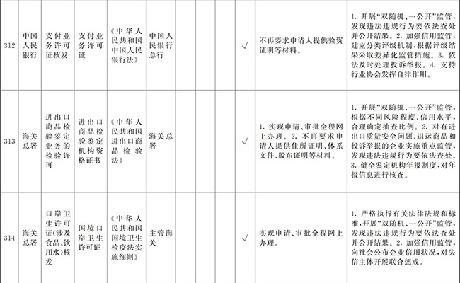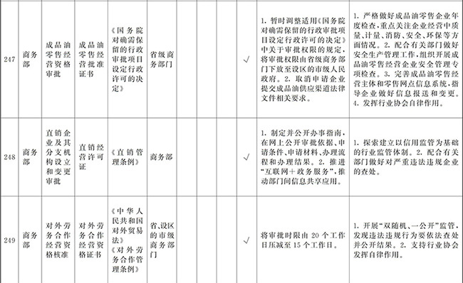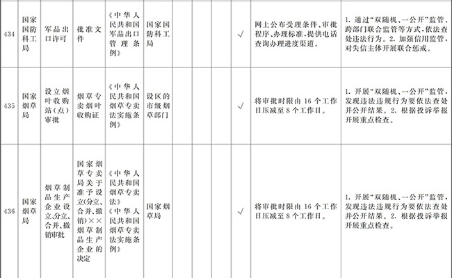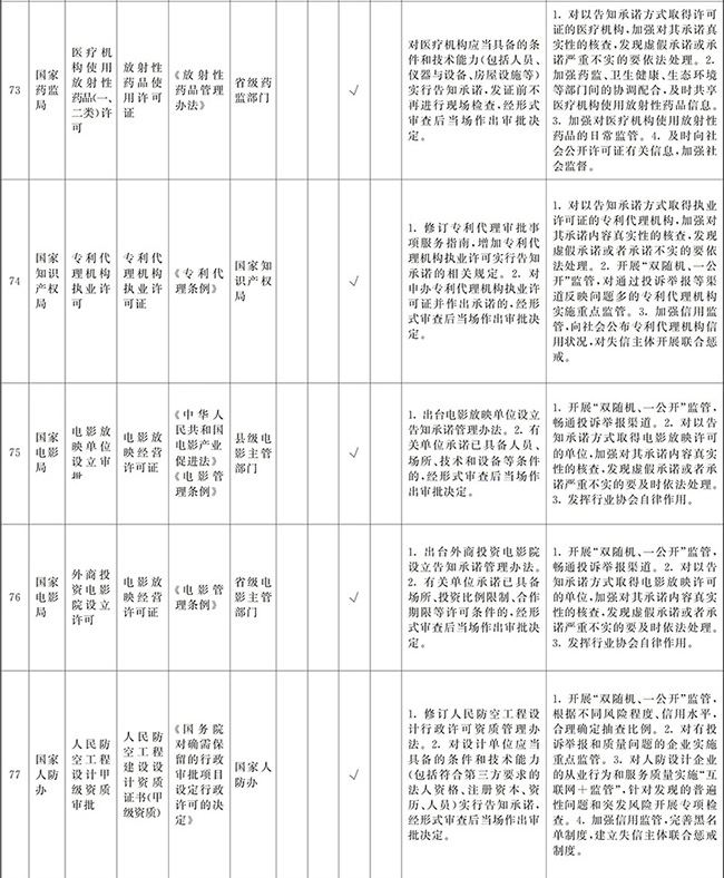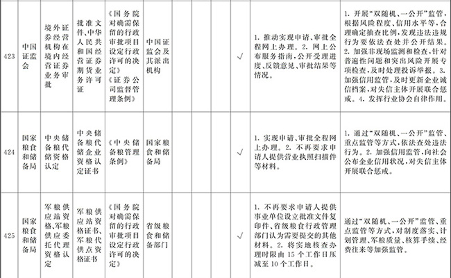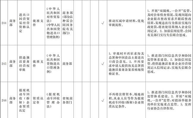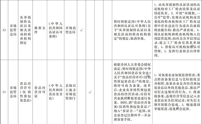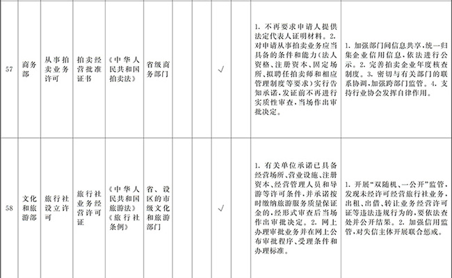 ?。ㄒ唬┲苯尤∠麑徟υO定必要性已不存在、市場機制能夠有效調節(jié)、行業(yè)組織或中介機構能夠有效實現(xiàn)行業(yè)自律管理、通過事中事后監(jiān)管能夠有效規(guī)范的涉企經營許可事項,直接取消審批。