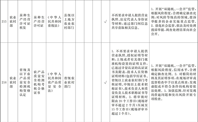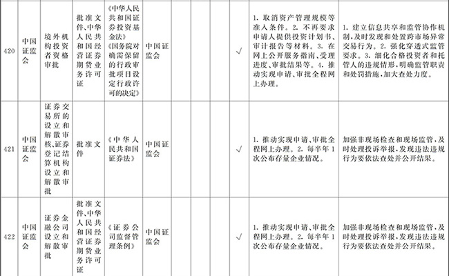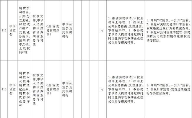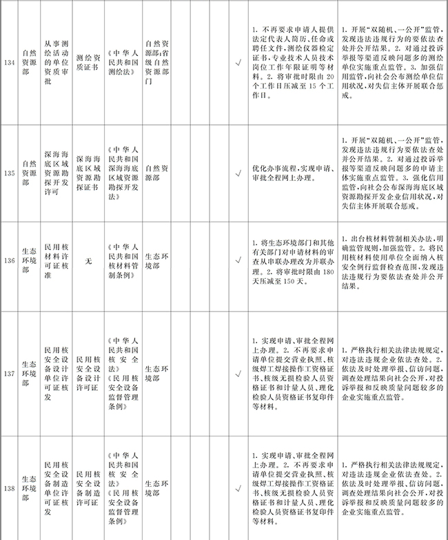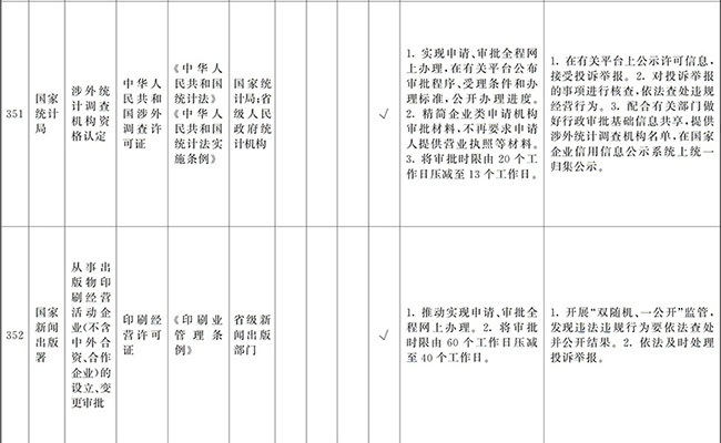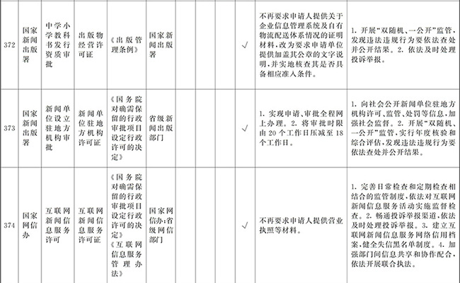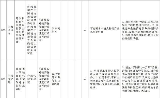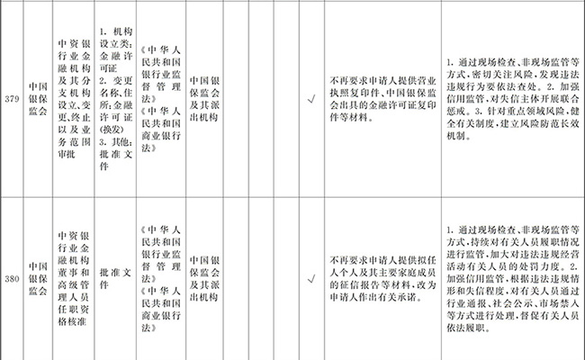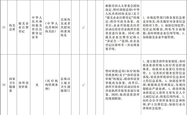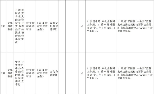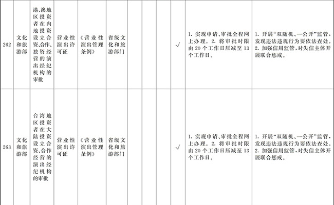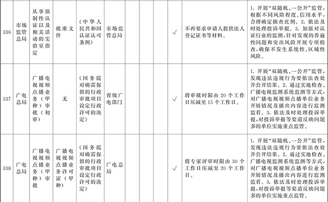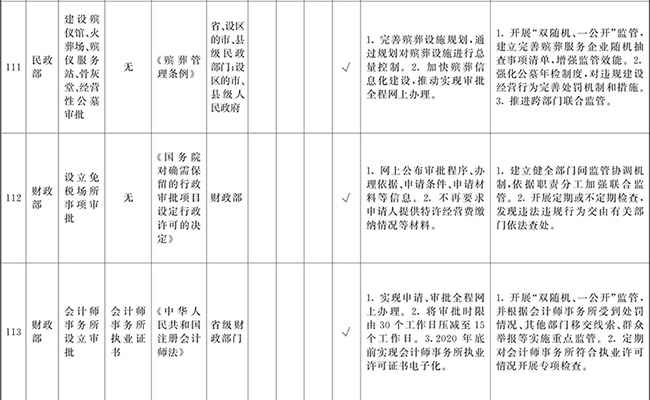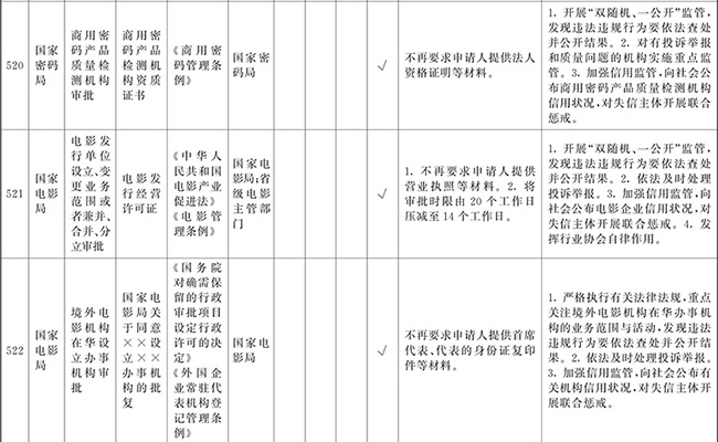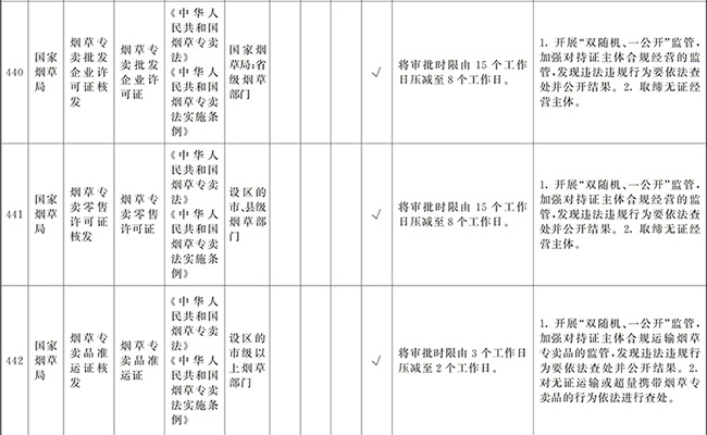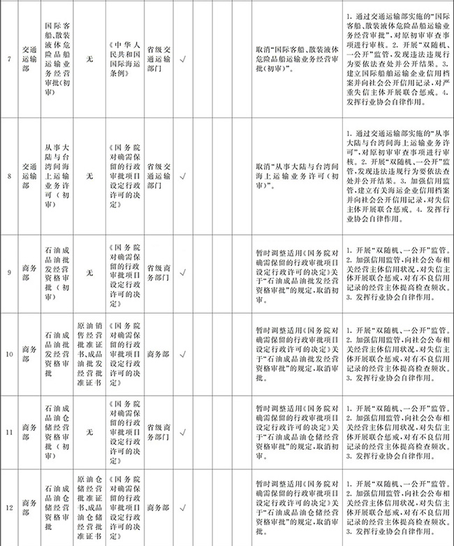 ?。ㄒ唬┲苯尤∠麑徟υO定必要性已不存在、市場機制能夠有效調節(jié)、行業(yè)組織或中介機構能夠有效實現(xiàn)行業(yè)自律管理、通過事中事后監(jiān)管能夠有效規(guī)范的涉企經營許可事項,直接取消審批。