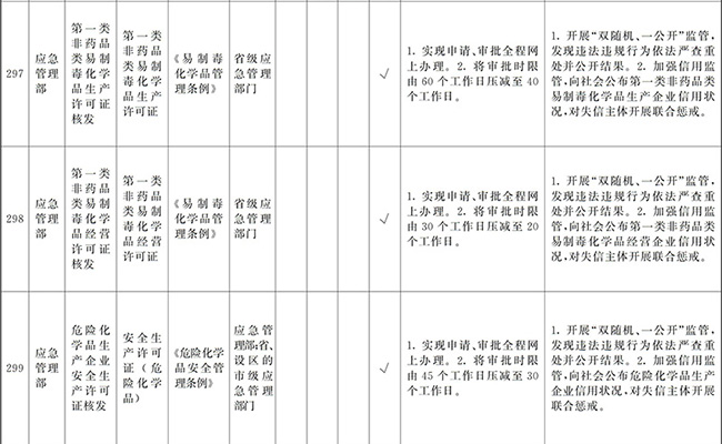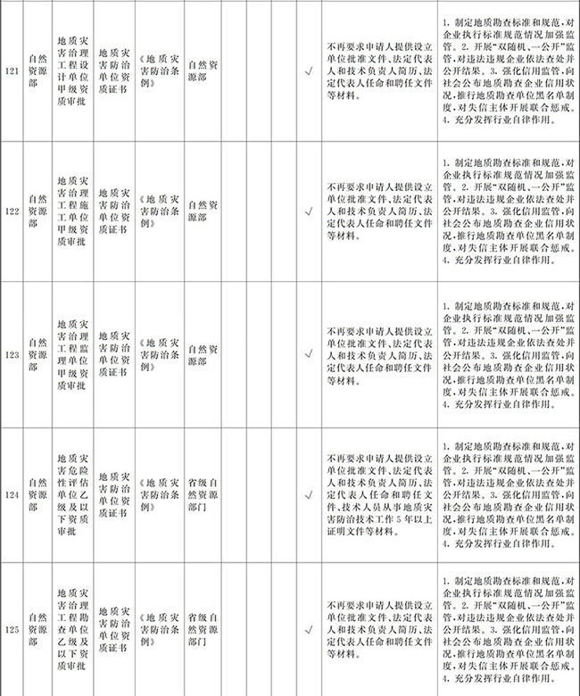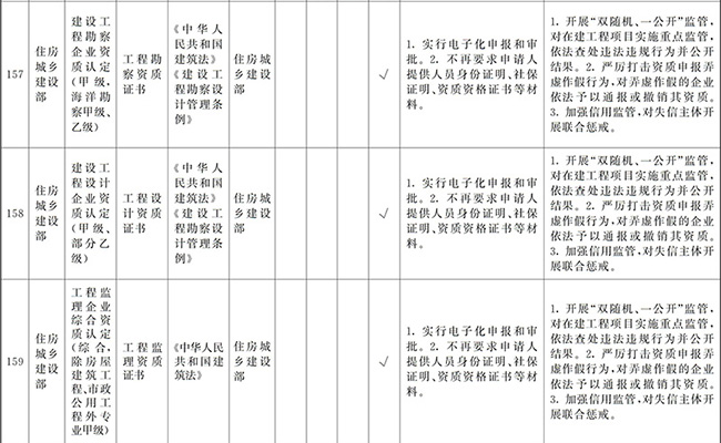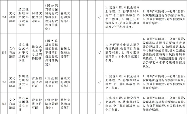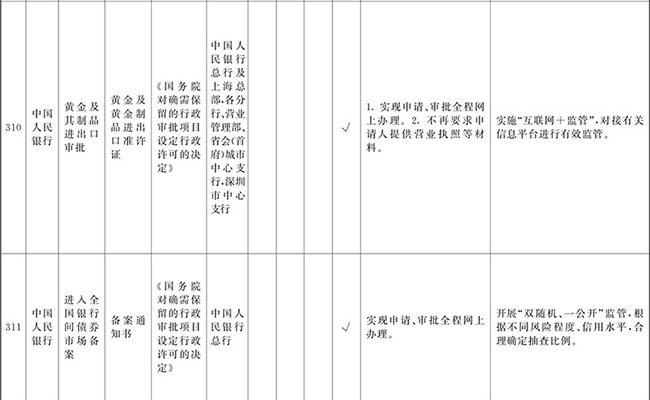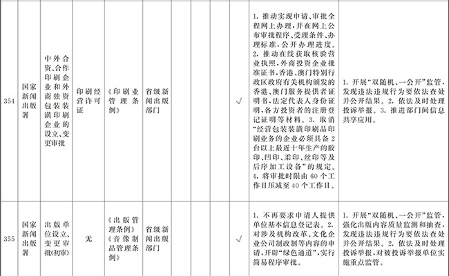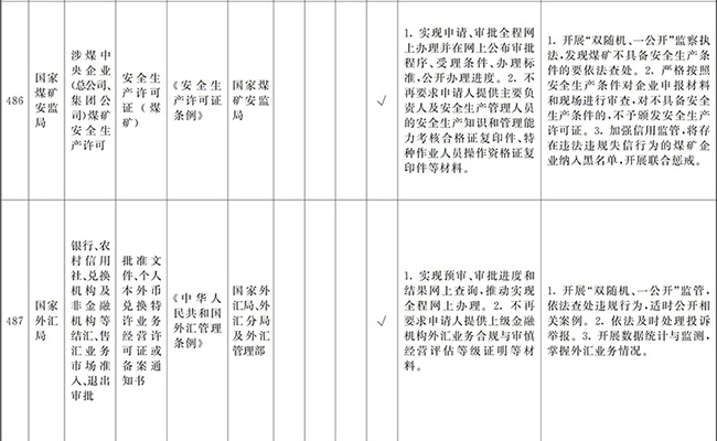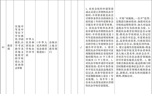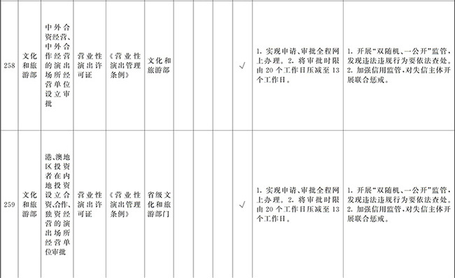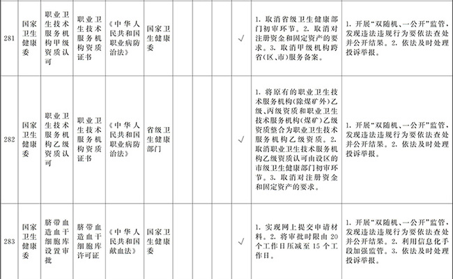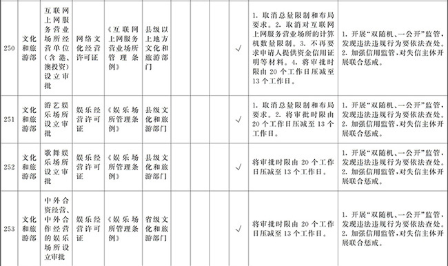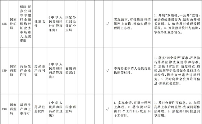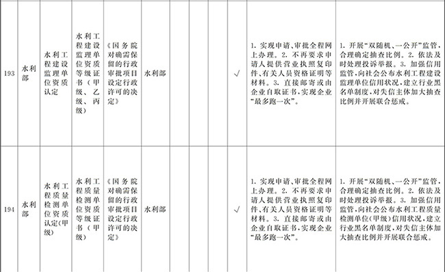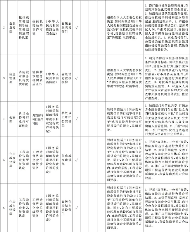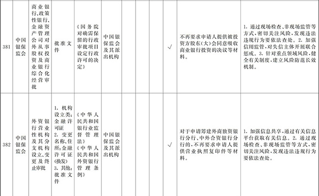 ?。ㄒ唬┲苯尤∠麑徟υO定必要性已不存在、市場機制能夠有效調節(jié)、行業(yè)組織或中介機構能夠有效實現(xiàn)行業(yè)自律管理、通過事中事后監(jiān)管能夠有效規(guī)范的涉企經營許可事項,直接取消審批。