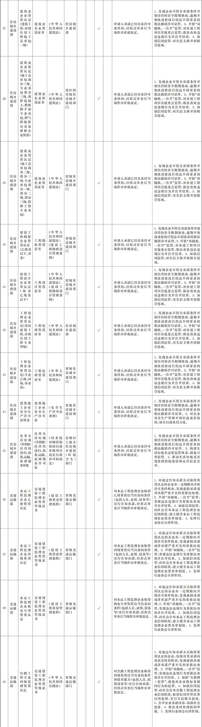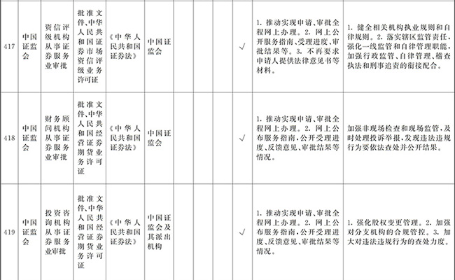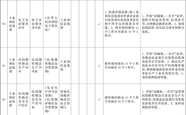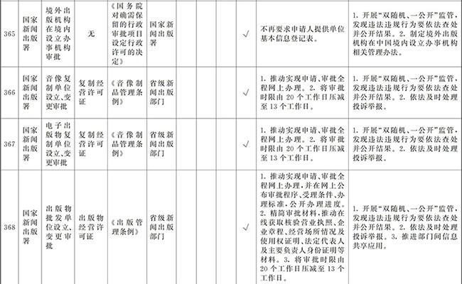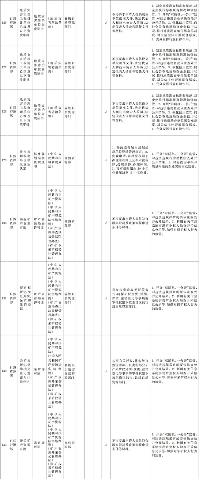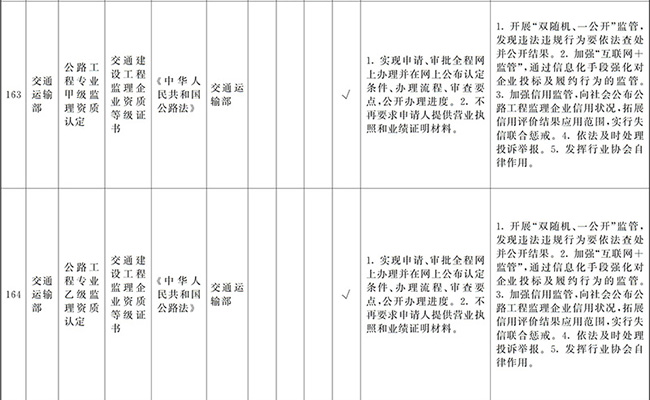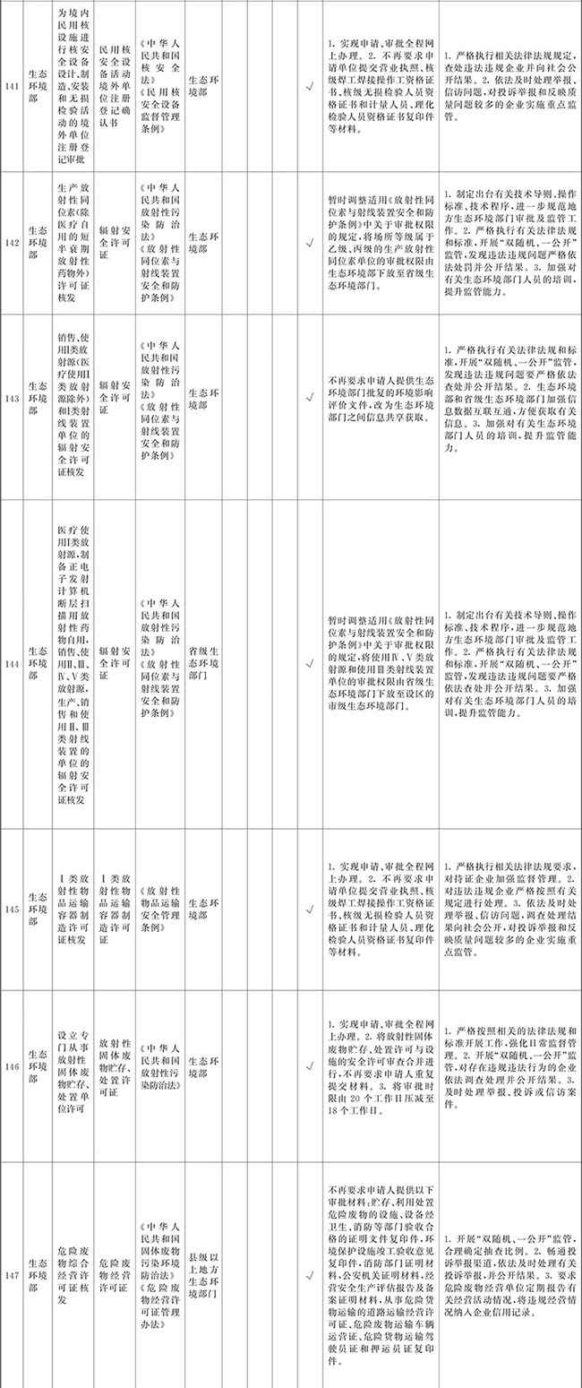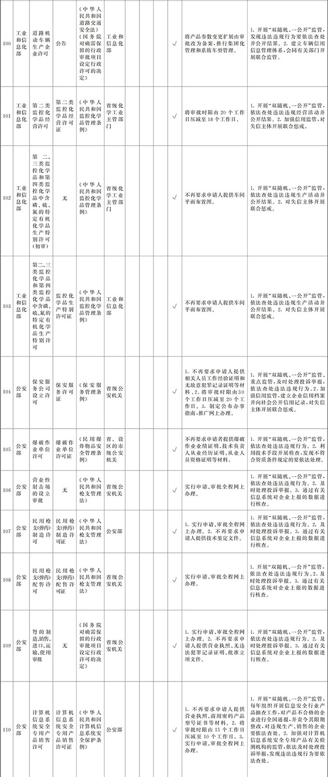 ?。ㄒ唬┲苯尤∠麑徟υO定必要性已不存在、市場機制能夠有效調節(jié)、行業(yè)組織或中介機構能夠有效實現(xiàn)行業(yè)自律管理、通過事中事后監(jiān)管能夠有效規(guī)范的涉企經營許可事項,直接取消審批。