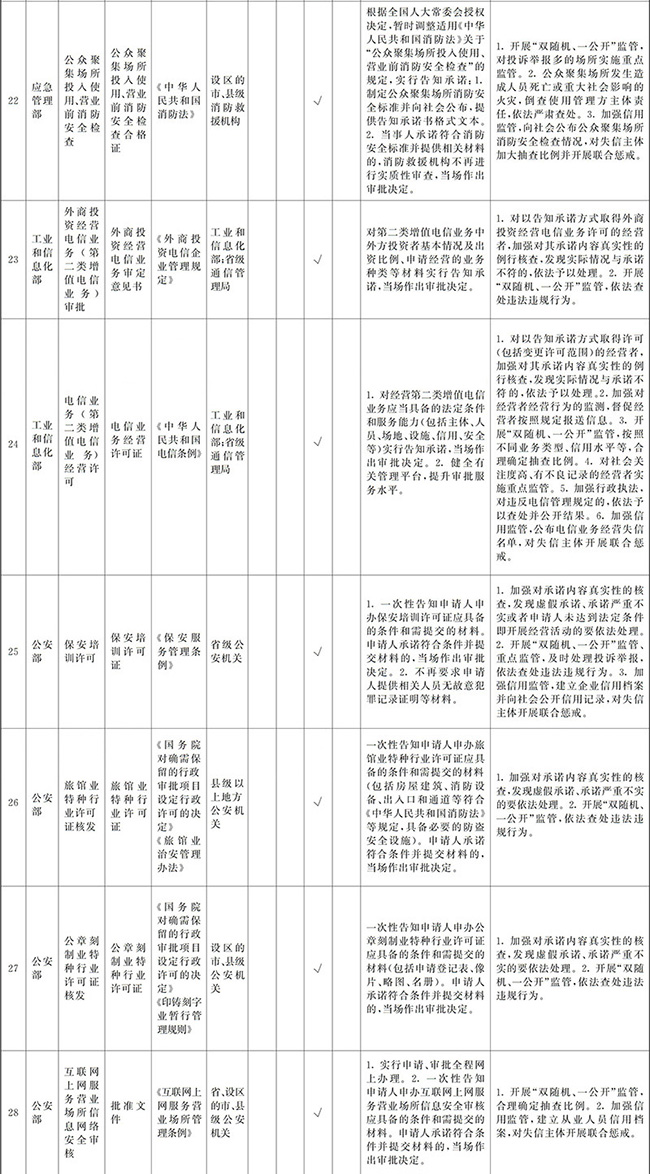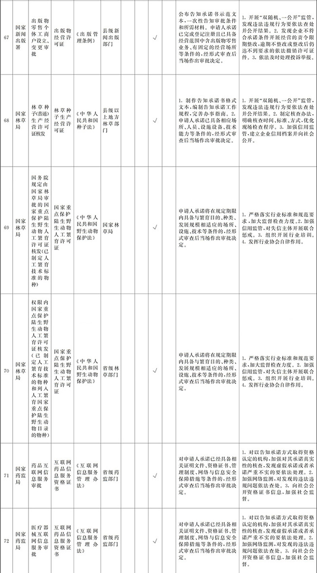 ?。ㄈ嵭懈嬷兄Z。對確需保留的涉企經營許可事項,企業(yè)就符合經營許可條件作出承諾,有關主管部門通過事中事后監(jiān)管能夠糾正不符合經營許可條件行為、有效防范風險的,實行告知承諾。