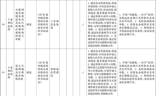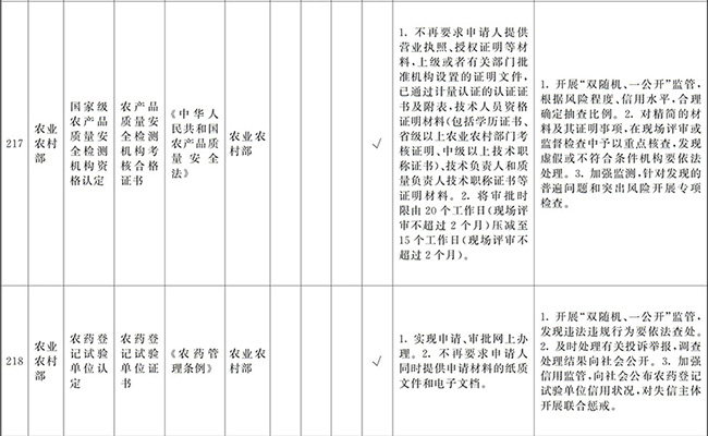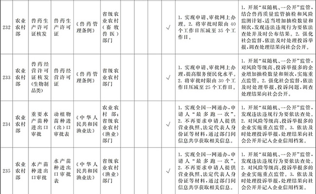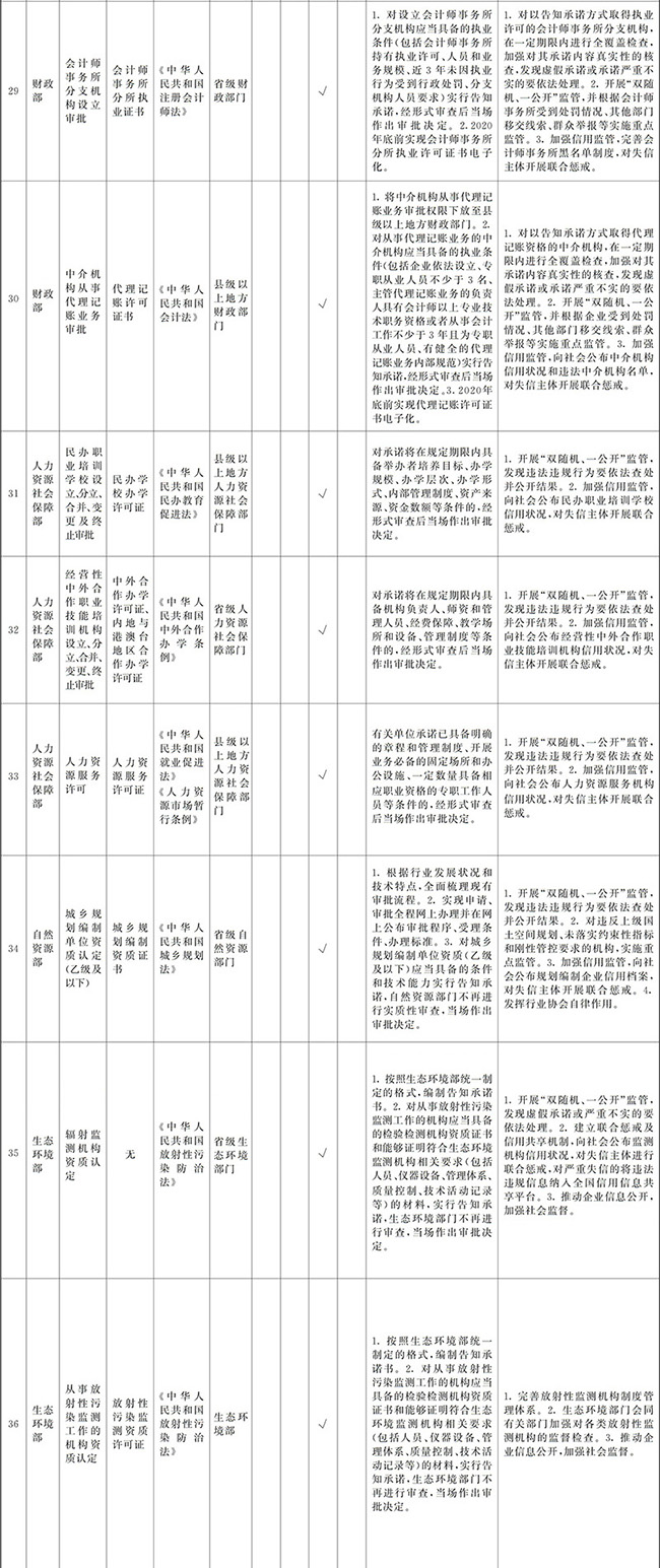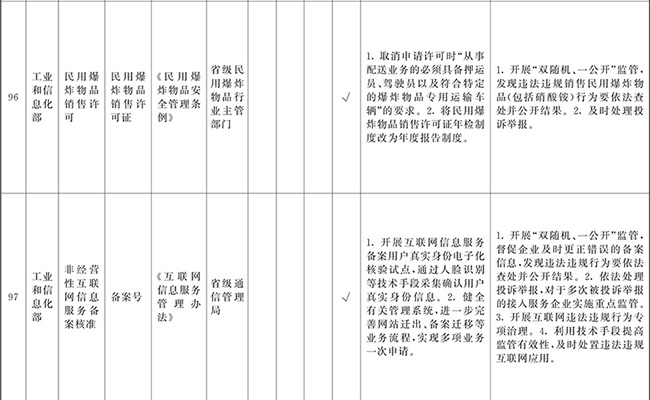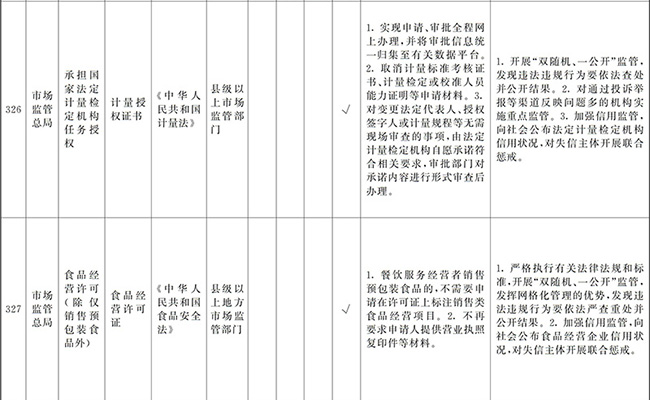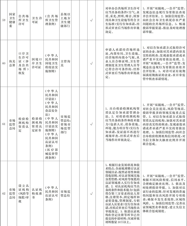 (四)創(chuàng)新和加強事中事后監(jiān)管。要堅持放管結合、并重,按照“誰審批、誰監(jiān)管,誰主管、誰監(jiān)管”原則,加強審批與監(jiān)管的銜接,健全監(jiān)管規(guī)則和標準,堅決糾正“不批不管”、“只批不管”、“嚴批寬管”等問題。要全面推行“雙隨機、一公開”監(jiān)管、跨部門聯(lián)合監(jiān)管和“互聯(lián)網+監(jiān)管”,對新技術、新產業(yè)、新業(yè)態(tài)、新模式實行包容審慎監(jiān)管,對高風險行業(yè)和領域實行重點監(jiān)管。要加強信用監(jiān)管,依法查處虛假承諾、違規(guī)經營等行為并記入信用記錄,實行失信聯(lián)合懲戒。要強化社會監(jiān)督,依法及時處理投訴舉報,引導社會力量參與市場秩序治理。要增強監(jiān)管威懾力,對嚴重違法經營的企業(yè)及相關責任人員,依法撤銷、吊銷有關證照,實施市場禁入措施。