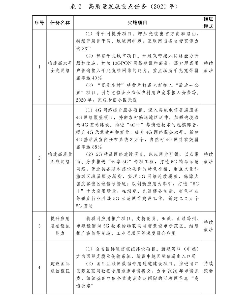 “數(shù)字云南”信息通信基礎(chǔ)設(shè)施建設(shè)三年行動計劃(2019—2021年)