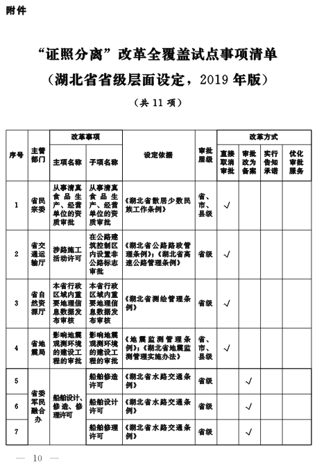 附件:“證照分離”改革全覆蓋試點事項清單(湖北省省級層面設(shè)定,2019年版)