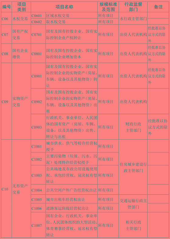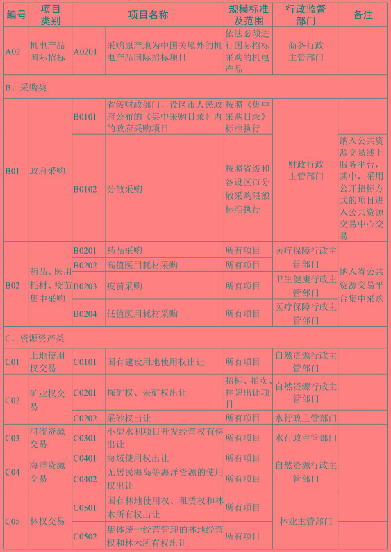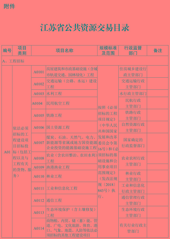?。ㄋ模┘訌?qiáng)公共資源交易目錄管理。制定和發(fā)布《江蘇省公共資源交易目錄》(以下簡(jiǎn)稱省交易目錄),將適合以市場(chǎng)化方式配置的自然資源、資產(chǎn)股權(quán)、環(huán)境權(quán)的出讓轉(zhuǎn)讓,依法必須招標(biāo)的工程建設(shè)項(xiàng)目招標(biāo)和機(jī)電產(chǎn)品國(guó)際招標(biāo),以及使用財(cái)政性資金以招標(biāo)方式采購(gòu)依法制定的政府集中采購(gòu)目錄以內(nèi)或者采購(gòu)限額標(biāo)準(zhǔn)以上的貨物、工程和服務(wù)等各類公共資源交易納入統(tǒng)一的公共資源交易平臺(tái)。其他可以市場(chǎng)化配置的公共資源,按照“成熟一項(xiàng)、推動(dòng)一項(xiàng)、進(jìn)場(chǎng)一項(xiàng)”的原則,及時(shí)報(bào)省政府審核,補(bǔ)充列入省交易目錄。省本級(jí)交易目錄按照省交易目錄執(zhí)行;各設(shè)區(qū)市可以根據(jù)省交易目錄,結(jié)合當(dāng)?shù)貙?shí)際,制定和發(fā)布本地區(qū)交易目錄。(省政務(wù)辦牽頭負(fù)責(zé),公共資源交易各行業(yè)行政主管部門參與)