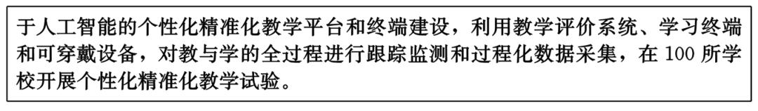 3.智能教育。積極推進基于教育大數據的智能產品與服務在教育教學、教育管理、教育評價、生活服務等方面的全流程應用,推動教育模式變革和生態(tài)重構。推進智慧校園建設,構建以學習者為中心的智能化教育教學環(huán)境。推進虛擬仿真實驗教學,加快建設在線智能教室、智能實驗室、虛擬工廠(醫(yī)院)等智能學習空間。推進基于人工智能的精準化教學和個性化學習,推動智能教學助手和智能學伴應用,提高教與學的效率。開展智慧教育示范區(qū)創(chuàng)建和智能教育試點示范學校建設,支持武漢市建設國家智慧教育示范區(qū)。