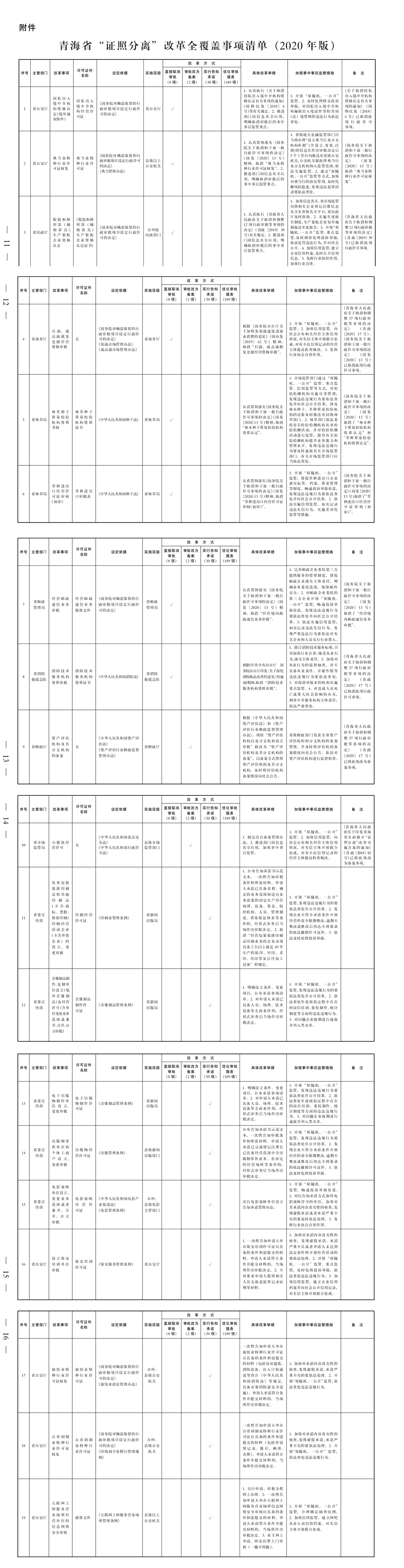 附件:青海省“證照分離”改革全覆蓋事項(xiàng)清單(2020年版)