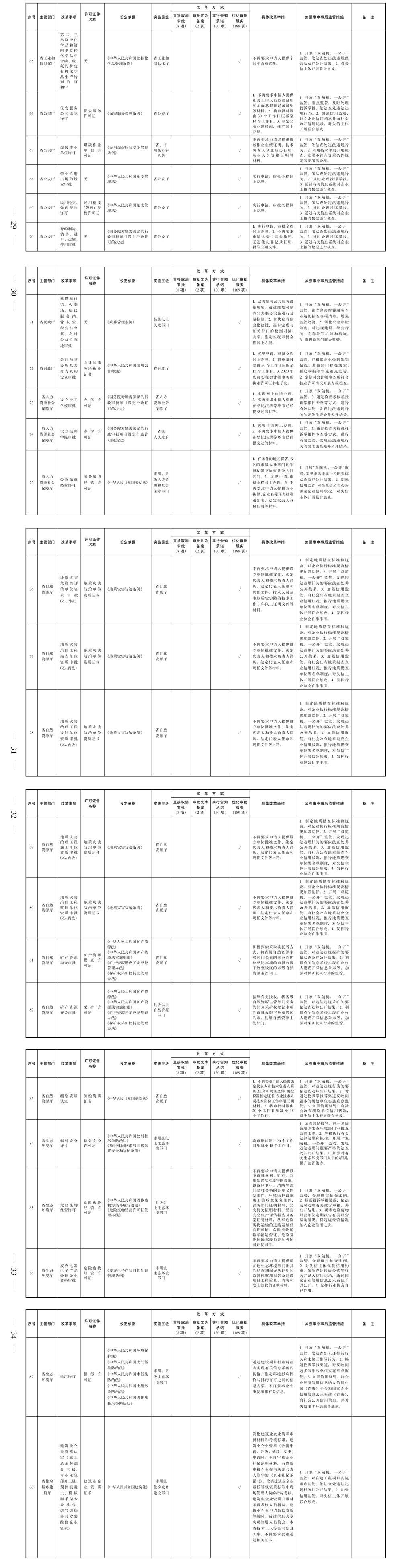 (一)梳理規(guī)范涉企經(jīng)營(yíng)許可事項(xiàng)。對(duì)照國(guó)務(wù)院印發(fā)的《“證照分離”改革全覆蓋事項(xiàng)清單(2019年版)》,梳理形成《青海省“證照分離”改革全覆蓋事項(xiàng)清單》,確定“證照分離”改革全覆蓋涉及的涉企經(jīng)營(yíng)許可事項(xiàng),明確主管部門、改革事項(xiàng)、許可證件名稱、設(shè)定依據(jù)、實(shí)施層級(jí)、改革方式、具體改革舉措、加強(qiáng)事中事后監(jiān)管措施等內(nèi)容,并實(shí)行動(dòng)態(tài)管理。