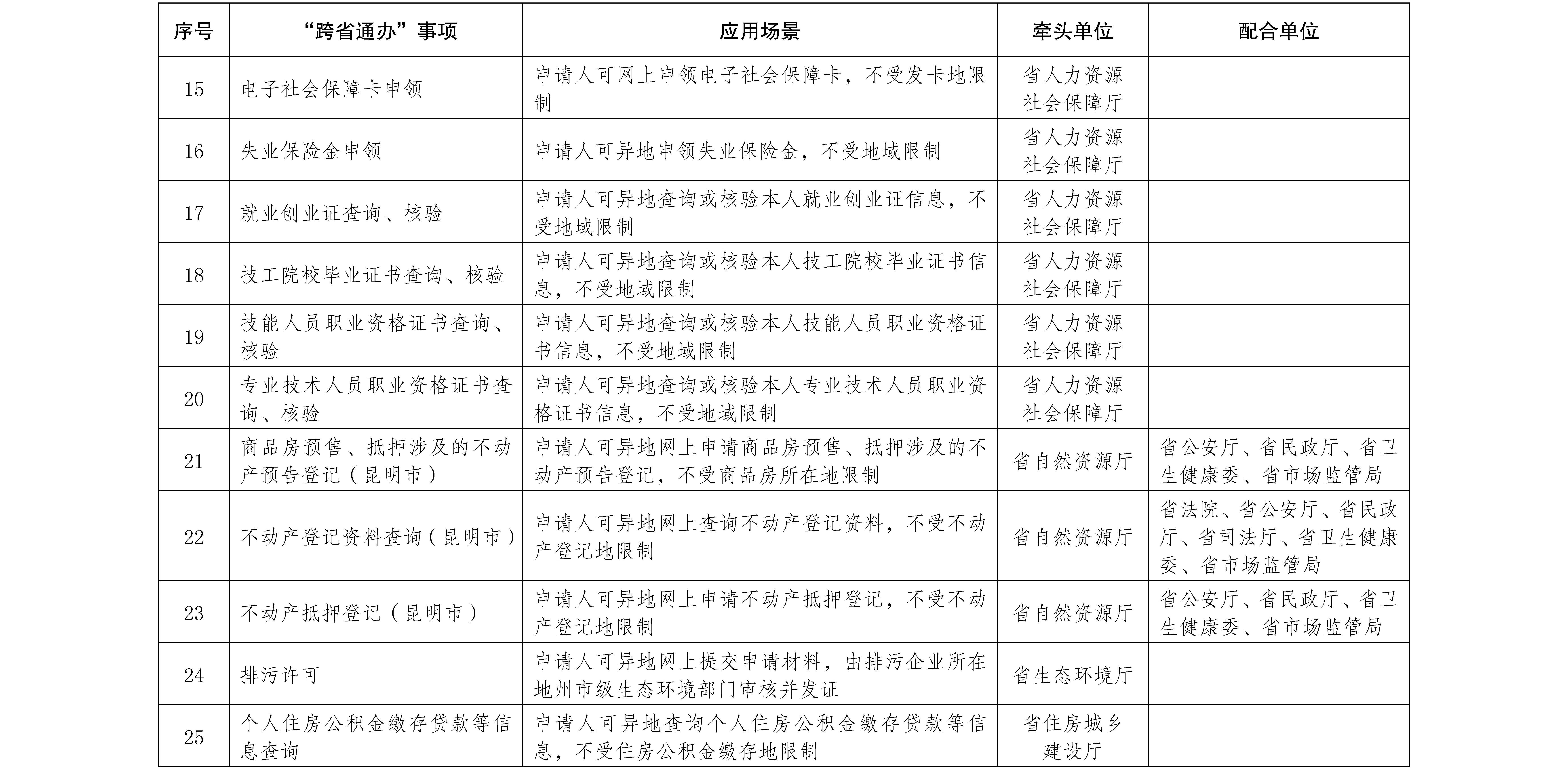 附件:云南省高頻政務(wù)服務(wù)“跨省通辦”事項(xiàng)清單