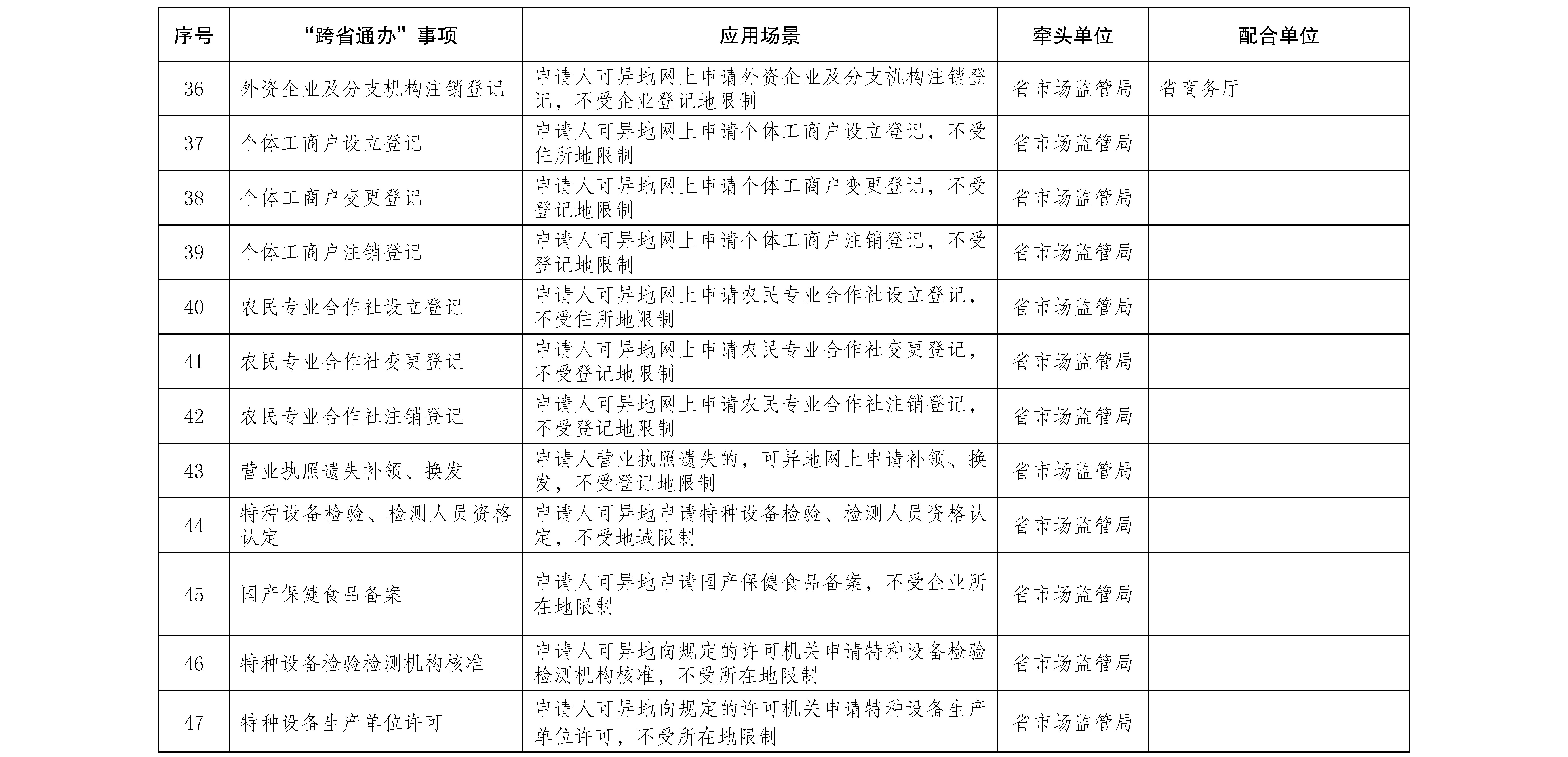 4.聚焦先行先試,積極探索區(qū)域“跨省通辦”。聚焦泛珠三角區(qū)域、西南地區(qū)等,點(diǎn)對(duì)點(diǎn)和區(qū)域拓展政務(wù)服務(wù)“跨省通辦”,支持各州、市與省外對(duì)口城市之間率先實(shí)現(xiàn)一批政務(wù)服務(wù)事項(xiàng)“跨省通辦”。鼓勵(lì)有關(guān)行業(yè)主管部門將本行業(yè)企事業(yè)單位承擔(dān)的公共服務(wù)事項(xiàng)納入“跨省通辦”范圍。(責(zé)任單位:各州、市人民政府,省直有關(guān)部門,中央駐滇有關(guān)單位。完成時(shí)限:2021年12月)