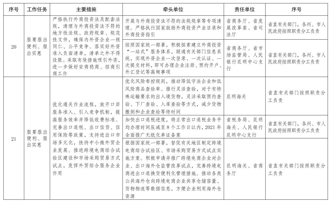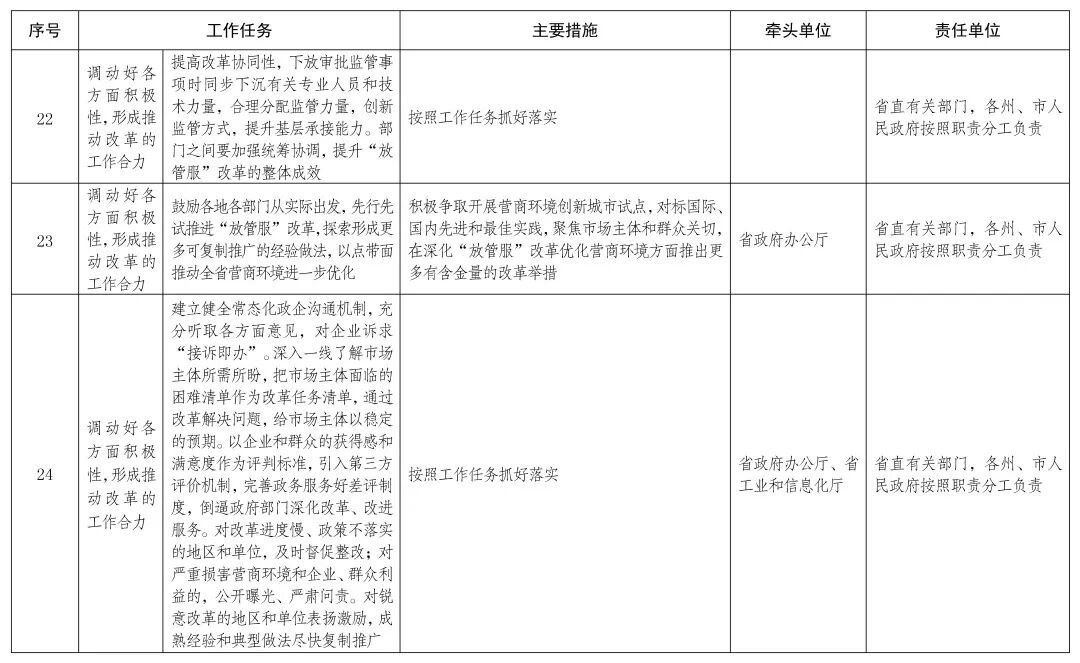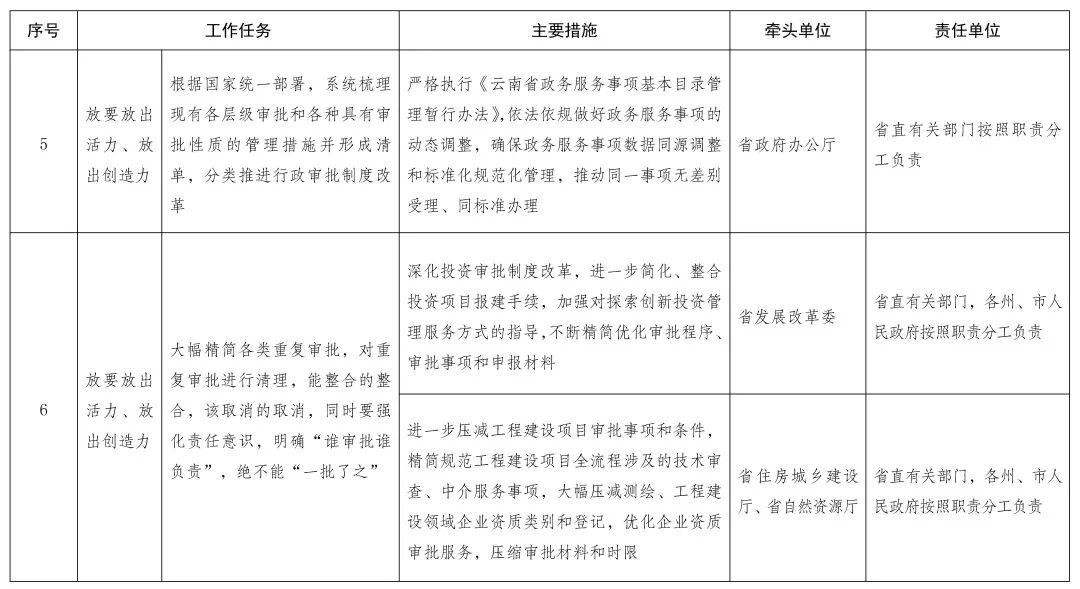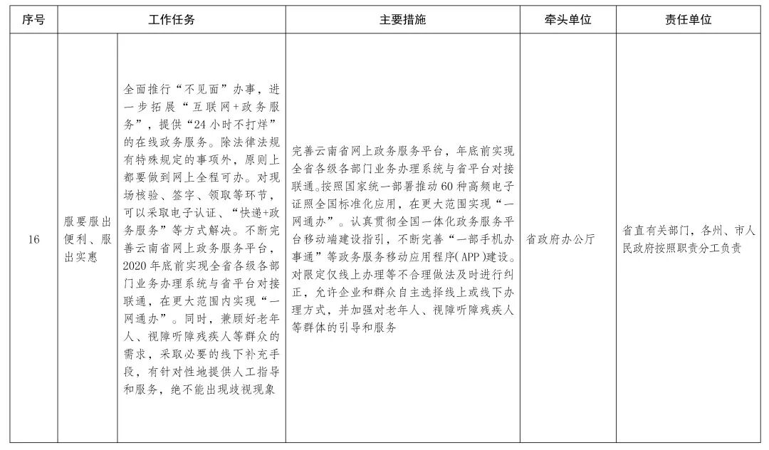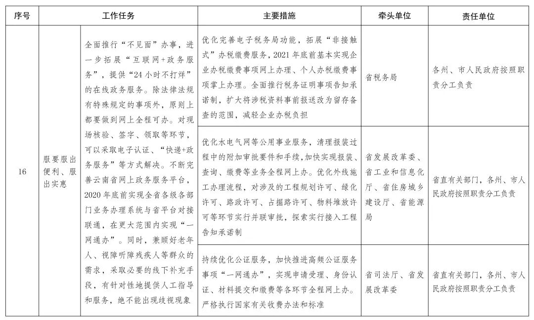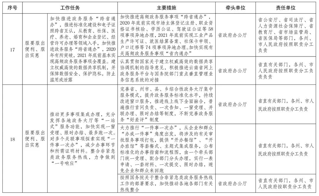 為貫徹落實《國務院辦公廳關于印發(fā)全國深化“放管服”改革優(yōu)化營商環(huán)境電視電話會議重點任務分工方案的通知》(國辦發(fā)〔2020〕43號)精神、國務院推進政府職能轉變和“放管服”改革協(xié)調小組工作要求,經省人民政府同意,現(xiàn)將《云南省貫徹全國深化“放管服”改革優(yōu)化營商環(huán)境電視電話會議重點任務分工方案》印發(fā)給你們,請認真抓好貫徹落實。