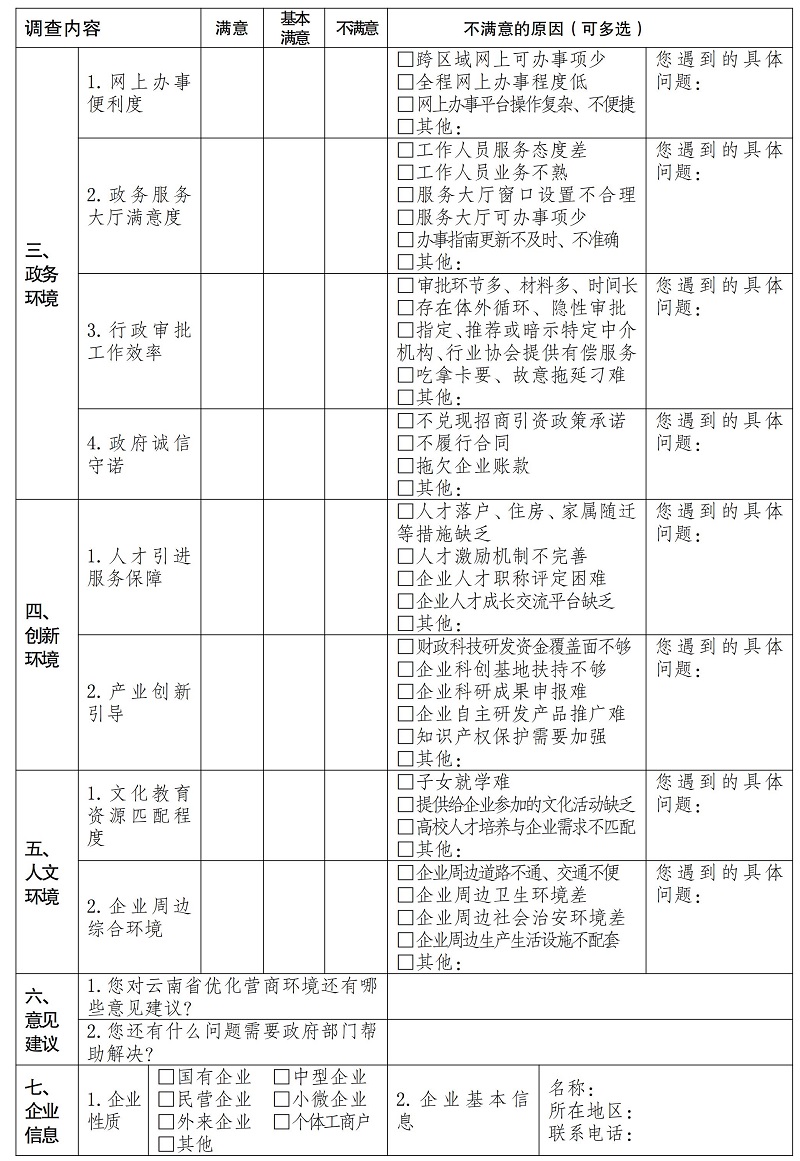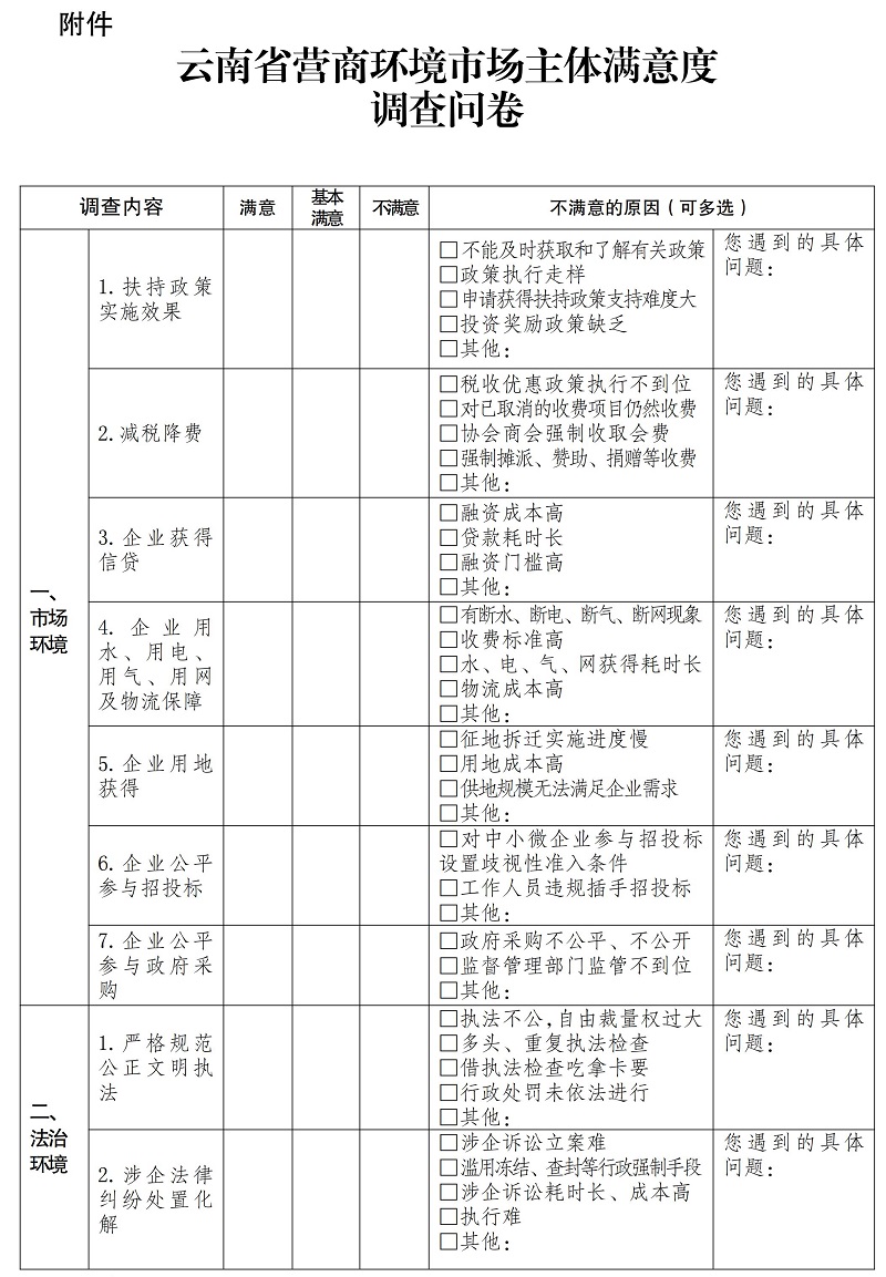 附件:云南省營商環(huán)境市場主體滿意度調(diào)查問卷