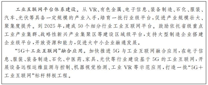 推進(jìn)工業(yè)互聯(lián)網(wǎng)建設(shè)。加快建設(shè)覆蓋全省的高質(zhì)量外網(wǎng),推動(dòng)工業(yè)企業(yè)、工業(yè)互聯(lián)網(wǎng)平臺(tái)、標(biāo)識(shí)解析節(jié)點(diǎn)、安全設(shè)施等接入。鼓勵(lì)工業(yè)企業(yè)利用5G、工業(yè)無源光網(wǎng)絡(luò)、工業(yè)以太網(wǎng)、工業(yè)無線網(wǎng)等先進(jìn)適用技術(shù)對(duì)內(nèi)網(wǎng)升級(jí)改造,探索在既有系統(tǒng)上疊加部署新網(wǎng)絡(luò)、新系統(tǒng),推動(dòng)信息技術(shù)(IT)網(wǎng)絡(luò)與運(yùn)營(yíng)技術(shù)(OT)網(wǎng)絡(luò)融合。加快標(biāo)識(shí)解析體系建設(shè),在服裝、電子信息、鋰電新材料、有色金屬、陶瓷、家具、中醫(yī)藥等領(lǐng)域,爭(zhēng)取建設(shè)運(yùn)營(yíng)一批工業(yè)互聯(lián)網(wǎng)標(biāo)識(shí)解析二級(jí)節(jié)點(diǎn)。加快工業(yè)互聯(lián)網(wǎng)公共遞歸解析節(jié)點(diǎn)建設(shè),保障工業(yè)互聯(lián)網(wǎng)解析服務(wù)性能。培育一批企業(yè)級(jí)、行業(yè)級(jí)、區(qū)域級(jí)工業(yè)互聯(lián)網(wǎng)平臺(tái),形成各有側(cè)重、協(xié)同集聚發(fā)展的工業(yè)互聯(lián)網(wǎng)平臺(tái)體系。加大工業(yè)場(chǎng)景應(yīng)用開發(fā)和應(yīng)用,推動(dòng)中小微企業(yè)數(shù)字化工具普及,形成建平臺(tái)和用平臺(tái)雙向迭代、互促共進(jìn)的良好生態(tài)。