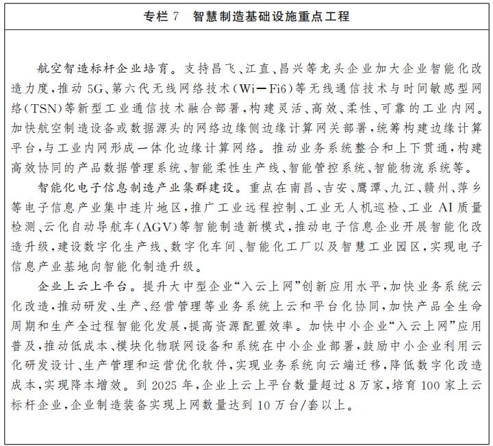 全國(guó)特色產(chǎn)業(yè)智能化轉(zhuǎn)型標(biāo)桿。聚焦航空、電子信息、中醫(yī)藥、陶瓷、稀土有色、紅色旅游、石油化工、光伏等特色產(chǎn)業(yè),以產(chǎn)業(yè)鏈重點(diǎn)和優(yōu)勢(shì)環(huán)節(jié)為著力點(diǎn),打開產(chǎn)業(yè)鏈上下游數(shù)字化通道,為全要素、全流程和全鏈條賦能賦智,支撐產(chǎn)業(yè)基礎(chǔ)高級(jí)化和產(chǎn)業(yè)鏈現(xiàn)代化,打造特色產(chǎn)業(yè)全國(guó)智能化轉(zhuǎn)型標(biāo)桿。