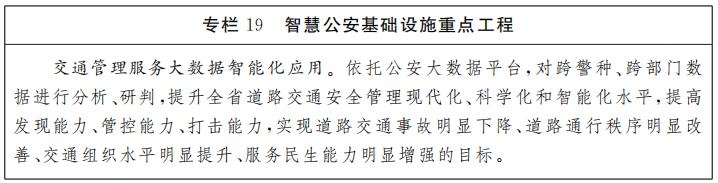 智慧公安基礎(chǔ)設(shè)施建設(shè)。深化公安大數(shù)據(jù)智能化建設(shè),升級(jí)完善省市兩級(jí)公安大數(shù)據(jù)平臺(tái),實(shí)現(xiàn)智能化的情報(bào)分析研判、預(yù)警預(yù)測(cè)預(yù)防、精準(zhǔn)管控打擊、精細(xì)管理服務(wù)。推進(jìn)智慧交管建設(shè),強(qiáng)化交通管理大數(shù)據(jù)應(yīng)用,通過科學(xué)、精準(zhǔn)預(yù)判安全風(fēng)險(xiǎn),提升道路安全防控、城市交通治理、交通違法管控、公安交管服務(wù)等能力。完善交管各類平臺(tái)系統(tǒng),織密道路交通感知網(wǎng)絡(luò),構(gòu)建以智能感知、智能計(jì)算、智能認(rèn)知、智能應(yīng)用為支撐的智慧交通管理體系。加強(qiáng)公安技偵平臺(tái)系統(tǒng)建設(shè)和專用裝備建設(shè),深入研究5G、物聯(lián)網(wǎng)、區(qū)塊鏈、AI等新技術(shù)新應(yīng)用,有效提升涉網(wǎng)犯罪偵查打擊、電子數(shù)據(jù)勘查取證和技術(shù)對(duì)抗等能力。持續(xù)推進(jìn)“雪亮工程”建設(shè),推動(dòng)公共安全視頻監(jiān)控建設(shè)和聯(lián)網(wǎng)應(yīng)用,提高視頻監(jiān)控點(diǎn)位覆蓋率和高清率,全面提升社會(huì)治安防控水平和城市社會(huì)治理現(xiàn)代化能力。