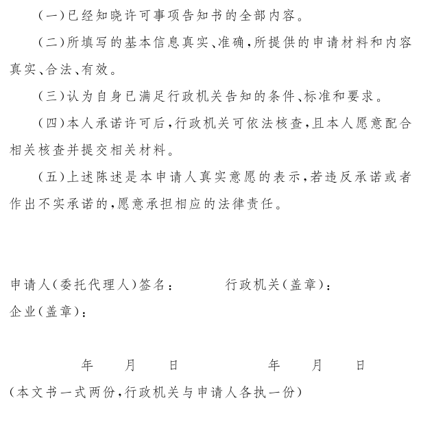 涉企經(jīng)營(yíng)許可事項(xiàng)告知承諾書(shū)