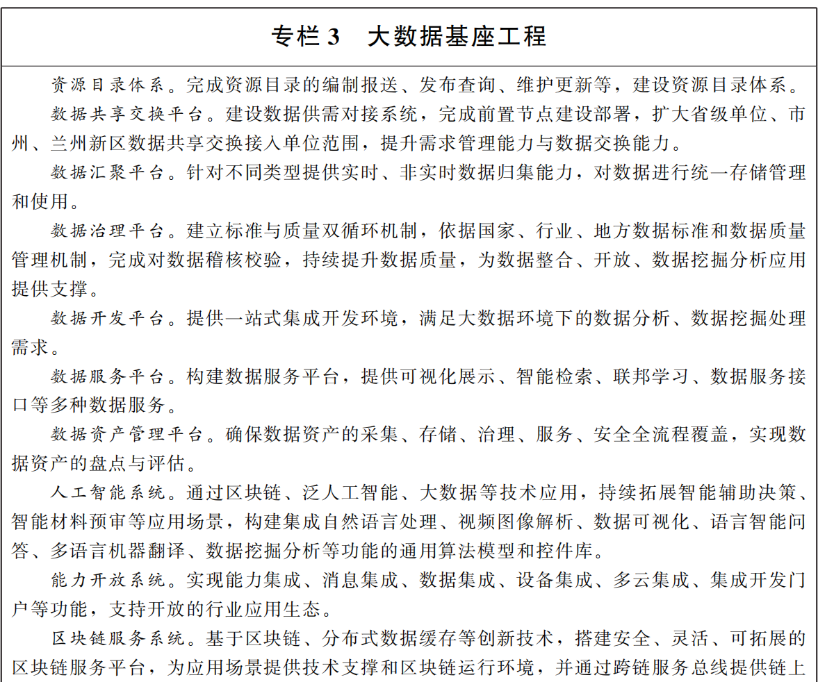 ——打造賦能特色數(shù)字政府。聚焦甘肅數(shù)字政府特色品牌建設(shè),深化區(qū)塊鏈應(yīng)用,加快推進(jìn)公共數(shù)據(jù)開(kāi)放共享和數(shù)據(jù)標(biāo)準(zhǔn)化建設(shè),深度應(yīng)用于政務(wù)服務(wù)、城市管理、民生服務(wù)等方面,數(shù)據(jù)價(jià)值不斷凸顯,數(shù)字政府引領(lǐng)智慧城市、數(shù)字經(jīng)濟(jì)、數(shù)字社會(huì)發(fā)展。