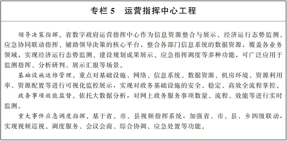 推動(dòng)網(wǎng)絡(luò)基礎(chǔ)設(shè)施的互聯(lián)互通和數(shù)據(jù)資源的共享共用,搭建集云、網(wǎng)、大數(shù)據(jù)、公共應(yīng)用支撐、運(yùn)營(yíng)指揮中心、政務(wù)服務(wù)能力支撐于一體的數(shù)字政府新基座,不斷完善和強(qiáng)化我省數(shù)字政府建設(shè)的基礎(chǔ)能力。