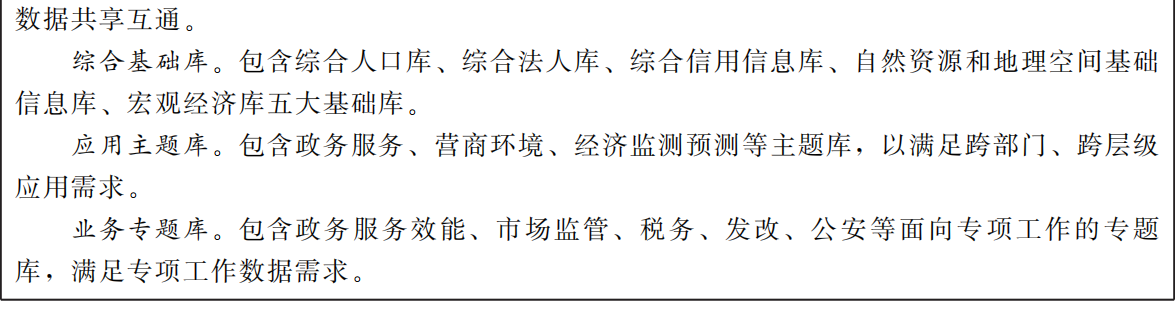 建設(shè)數(shù)據(jù)資產(chǎn)管理庫(kù)。推動(dòng)各級(jí)各部門(mén)政務(wù)數(shù)據(jù)資源向大數(shù)據(jù)中心匯聚,根據(jù)統(tǒng)一標(biāo)準(zhǔn)規(guī)范,構(gòu)建綜合人口庫(kù)、綜合法人庫(kù)、綜合信用信息庫(kù)、自然資源和地理空間基礎(chǔ)信息庫(kù)、宏觀經(jīng)濟(jì)庫(kù)五大基礎(chǔ)庫(kù),構(gòu)建事項(xiàng)庫(kù)、辦件庫(kù)和材料庫(kù)等主題庫(kù)及“省內(nèi)通辦”“跨省通辦”“一件事一次辦”等專題庫(kù)。提升數(shù)據(jù)共享效率,優(yōu)化辦事流程,滿足不動(dòng)產(chǎn)登記、社會(huì)保障、戶籍辦理、企業(yè)設(shè)立變更、準(zhǔn)營(yíng)準(zhǔn)辦等重點(diǎn)領(lǐng)域,以及人口、法人、教育、婚姻、生育、住房等普遍性數(shù)據(jù)需求。