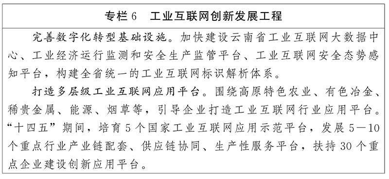 夯實工業(yè)互聯(lián)網網絡基礎。實施工業(yè)互聯(lián)網外網提升計劃,推動企業(yè)外網改造升級,搭建低時延、高帶寬、廣覆蓋、可定制的工業(yè)互聯(lián)網企業(yè)外網。實施工業(yè)互聯(lián)網企業(yè)內網標桿計劃,支持工業(yè)企業(yè)建設改造企業(yè)內網,在重點企業(yè)內推進5G、邊緣計算、時間敏感網絡等網絡技術部署應用。支持昆明、曲靖、玉溪建設重點行業(yè)和重點區(qū)域工業(yè)互聯(lián)網標識解析二級節(jié)點,整合工業(yè)互聯(lián)網平臺和標識解析的協(xié)同應用。