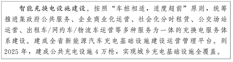 推動數(shù)字基礎設施與交通運輸基礎設施協(xié)同高效建設。實施綜合交通網全光纖網絡和物聯(lián)感知全覆蓋工程。建設智慧公路,推動公路感知網絡與公路基礎設施建設養(yǎng)護工程同步規(guī)劃、同步建設、同步投用。發(fā)展智慧鐵路,提升鐵路全路網列車調度指揮、運輸管理、維護檢測智能化水平。打造智慧機場,推進機場內部信息網、物聯(lián)網建設。推進城市公共交通與交通樞紐智能協(xié)同調度。推動綜合客運樞紐智能化建設,完善導航、票務、換乘等設施,加強不同運輸方式信息互聯(lián)共享,提升綜合出行服務便捷水平。建設服務區(qū)綜合信息平臺,提升服務區(qū)智能化水平。加快全省新能源充電樁、充換電站等部署,建立市場化建設、運營機制。