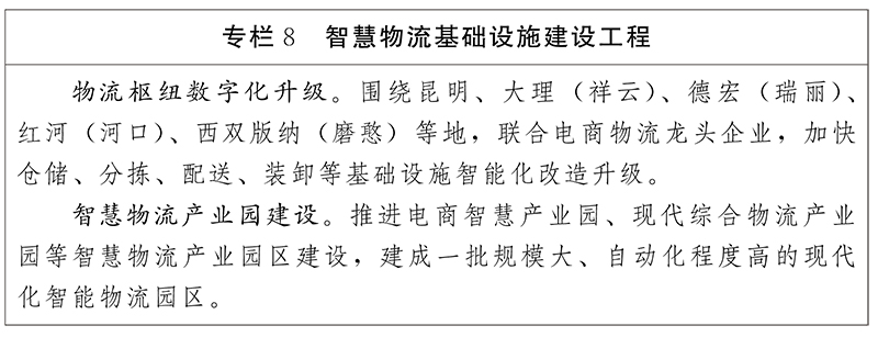 加強融合基礎設施開放共享。深入推進互聯(lián)互通國際大通道建設同數(shù)字技術發(fā)展深度融合。積極打造面向南亞東南亞國家物流樞紐,完善跨境物流服務體系,提升貿易便利化水平。深入推進跨境電商平臺建設,鼓勵“互聯(lián)網+邊境商貿”業(yè)態(tài)發(fā)展。